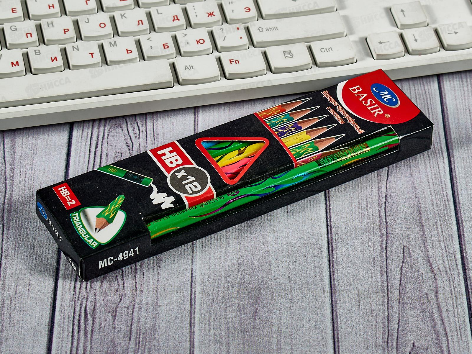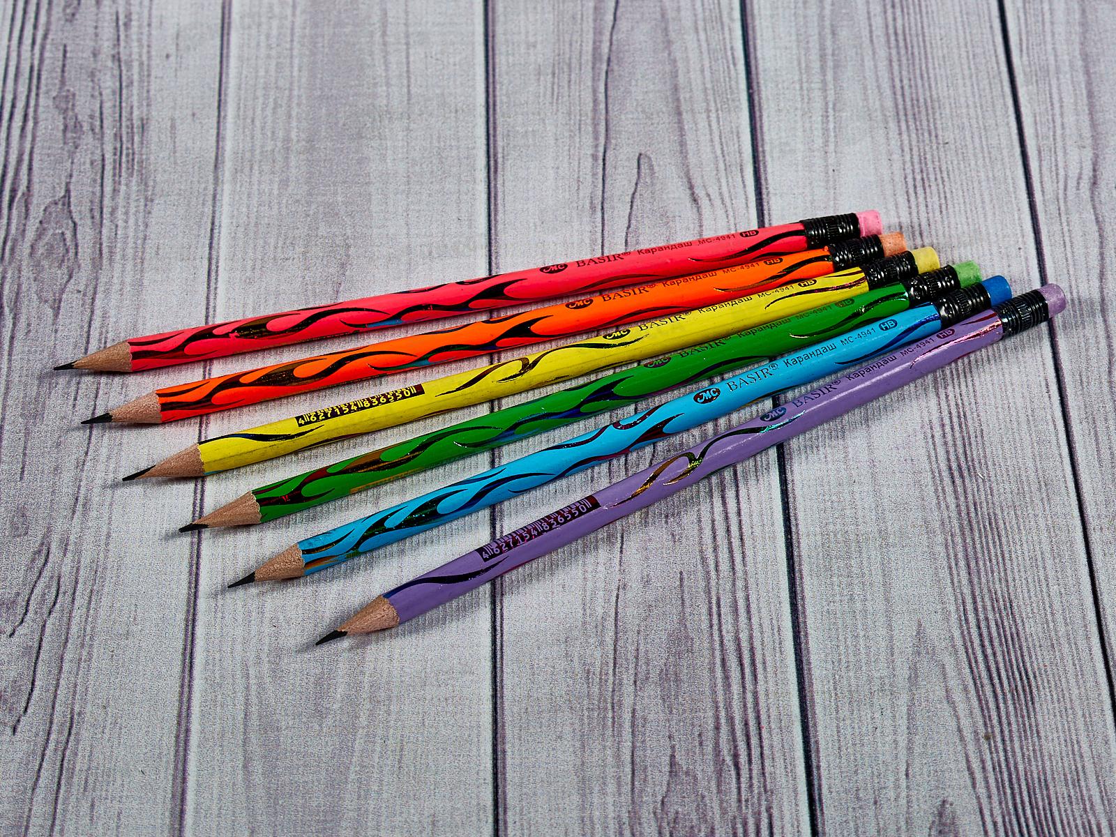 Карандаш чернографитный с ластиком BASIR цветной с голографич.рис. MC-4941 *12/144