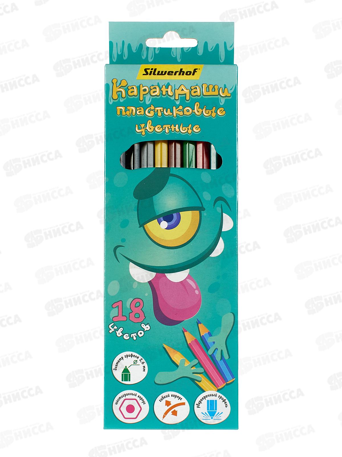 Карандаши 18 цветов SILWERHOF Монстрики шестигранные, пластиковые, картонная упаковка, 1830339*8/160