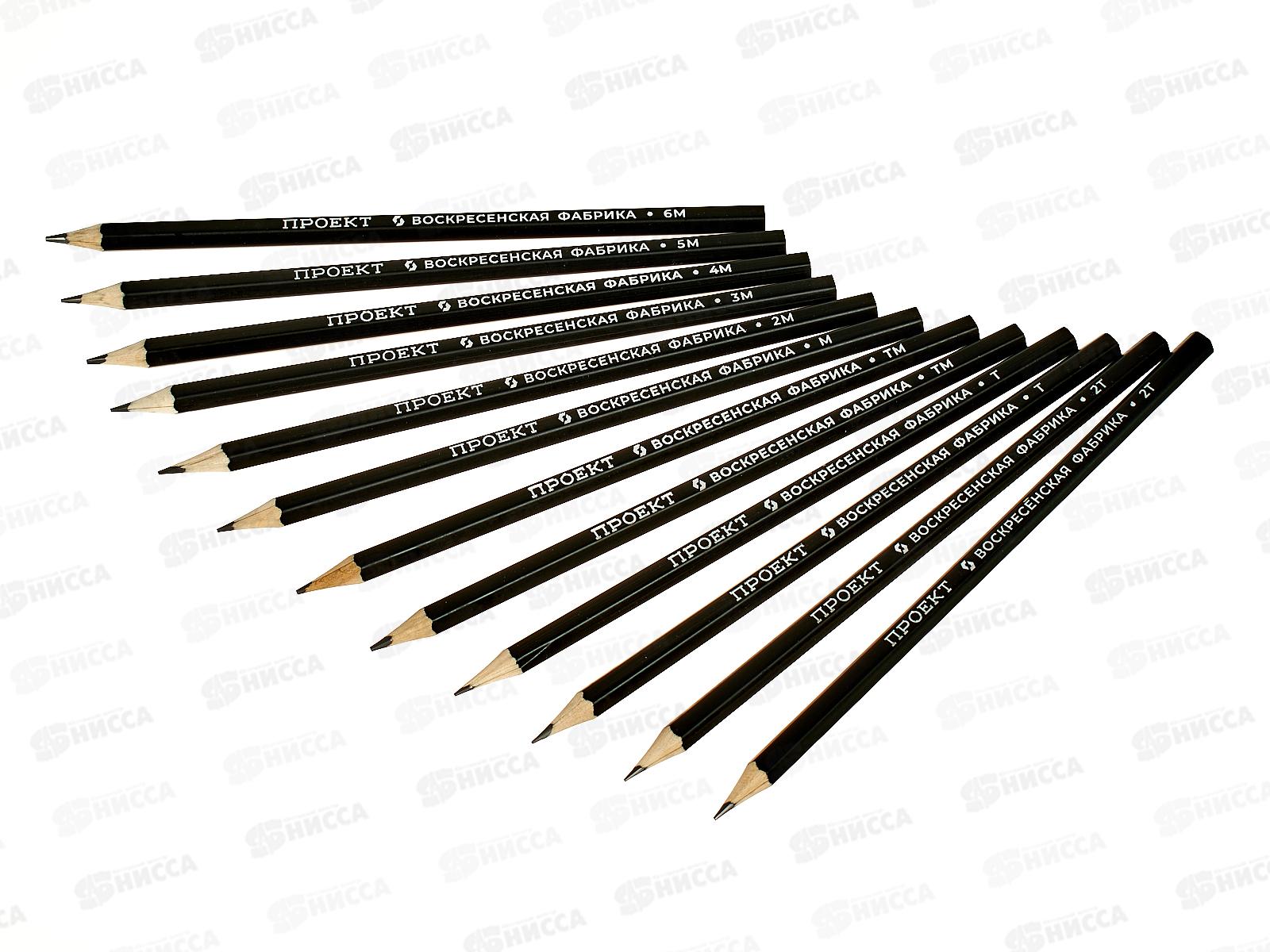 Карандаш чернографитный ВКФ "Проект" 12шт., ассорти, 12B-4010*8