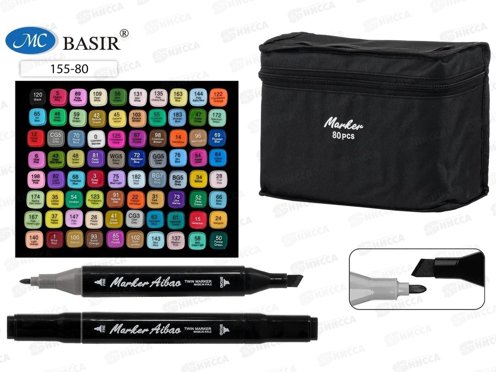 Маркеры Basir для скетчинга 80 цветов, MC-155-80