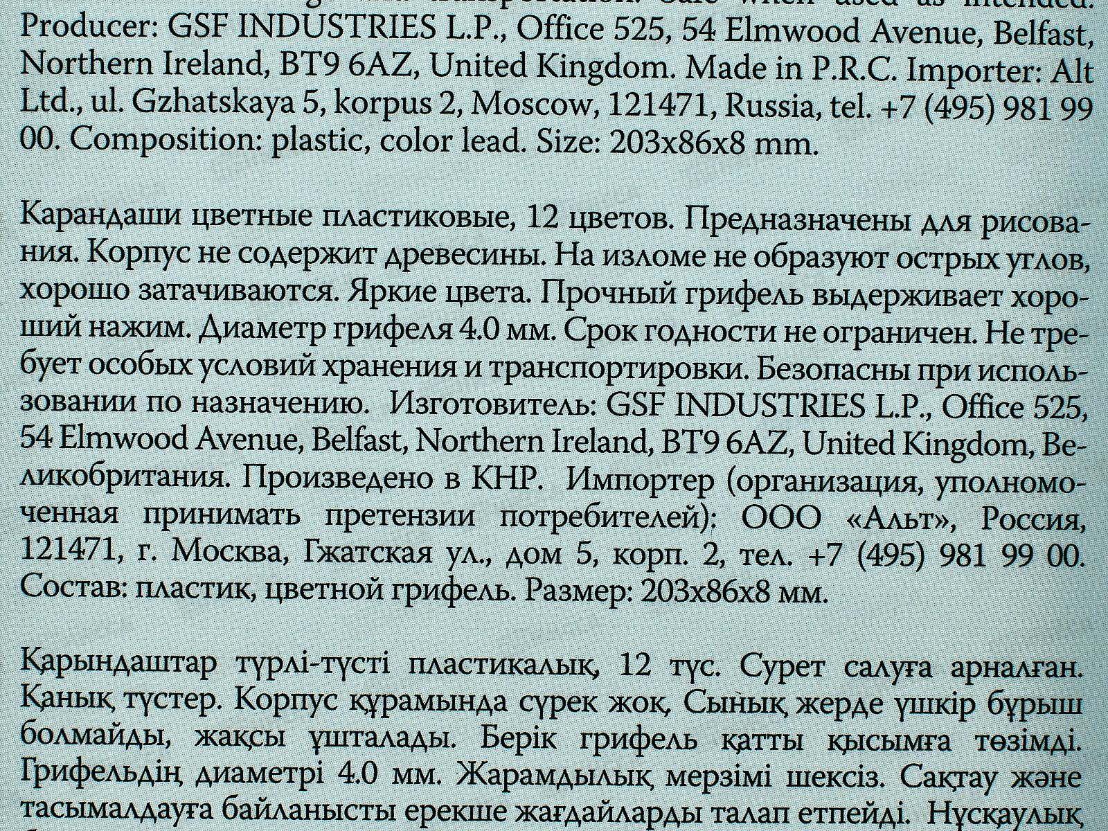 Набор из 12 пластиковых цветных карандашей KAWAII ANIMALS от Bruno Visconti порадует как детей, так и их родителей. Карандаши абсолютно безопасны, не содержат токсичных веществ – родители могут быть спокойны за своих чад. А у юных художников есть возможность воплотить в жизнь большое количество идей - благодаря увеличенному диаметру грифеля до 4 мм карандаши прослужат долго. Благодаря высокому содержанию цветных пигментов рисунки будут яркими, а сам процесс рисования доставит удовольствие - карандаши мягко скользят по поверхности бумаги. Грифель надежно защищен корпусом из ударостойкого пластика, он не сломается при падении карандаша и легко затачивается при необходимости. Яркий и трендовый дизайн картонной упаковки с покрытием Soft touch - еще одно достоинство карандашей Bruno Visconti. Их приятно дарить и еще приятнее получать в подарок!