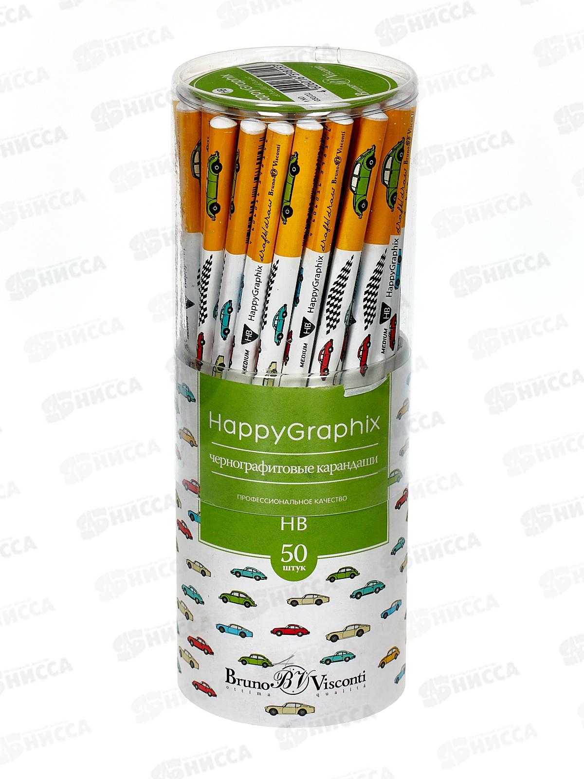 Карандаш ч/г Happy Graphix Многоцветные машины, НВ,21-0030/22*50/300