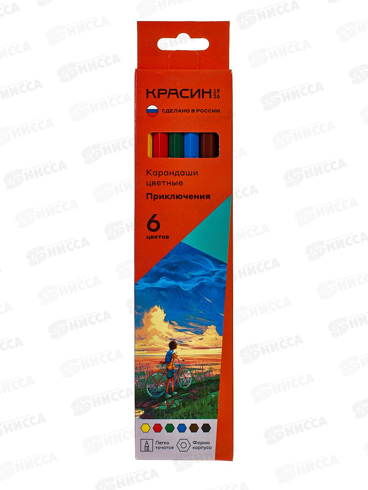Карандаши 6 цветов Красин "Приключения" шестигранные,КР-060200*32