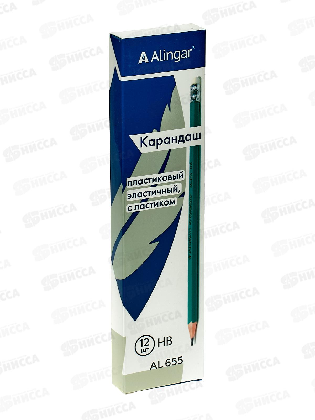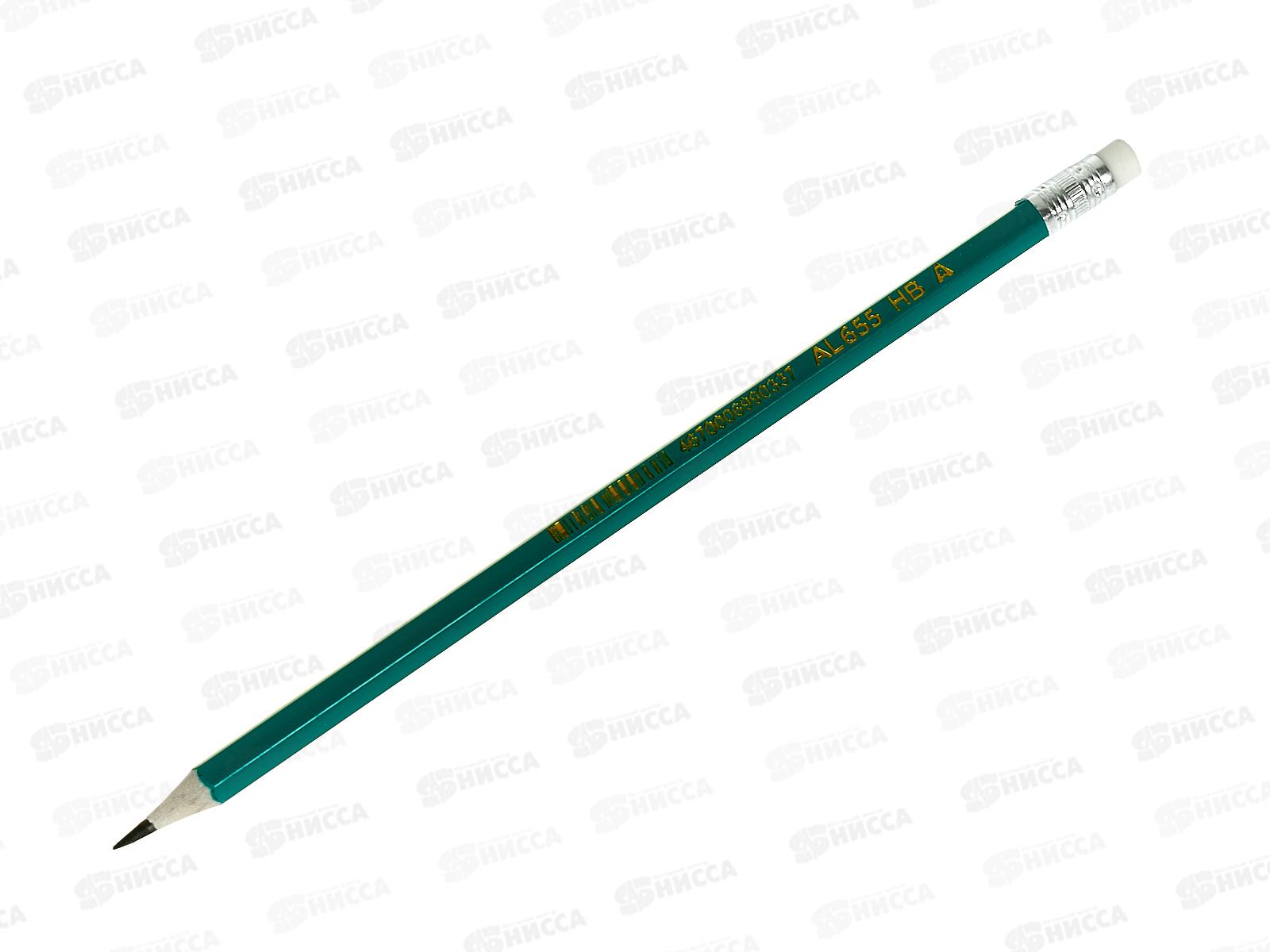 Карандаш чернографитный с ластиком Alingar, пластиковый, зеленый, AL655 *12/144