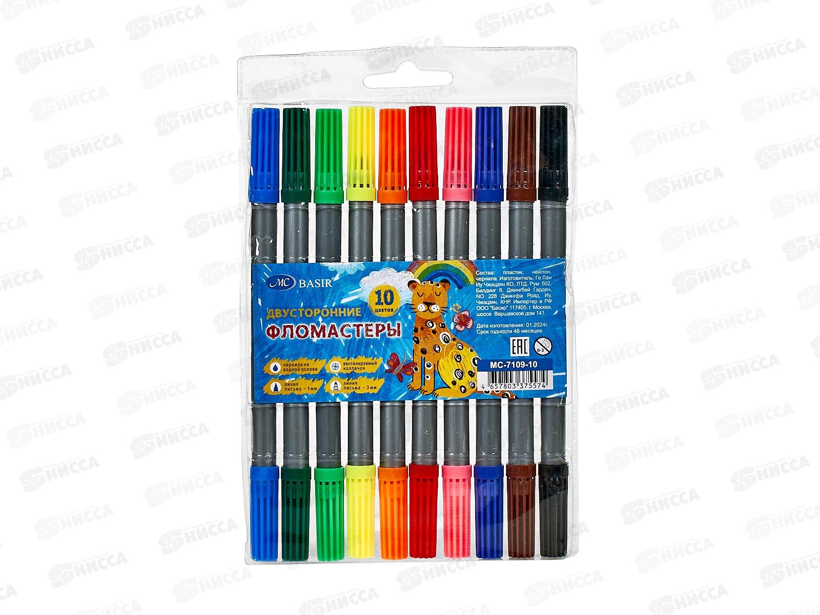 Фломастеры 10 цветов BASIR Тигр, двусторонние 1/3мм MC-7109-10 *12/144