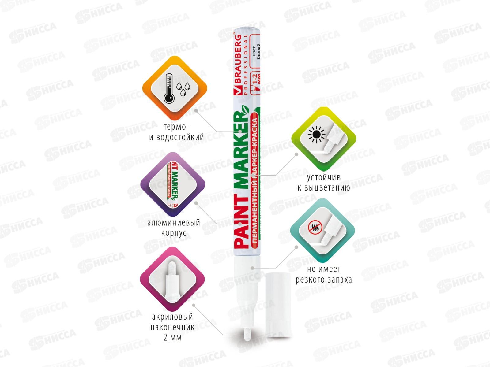 Маркер-краска BRAU лаковый белый, 2мм б/запаха алюм.корпус 150869 *12