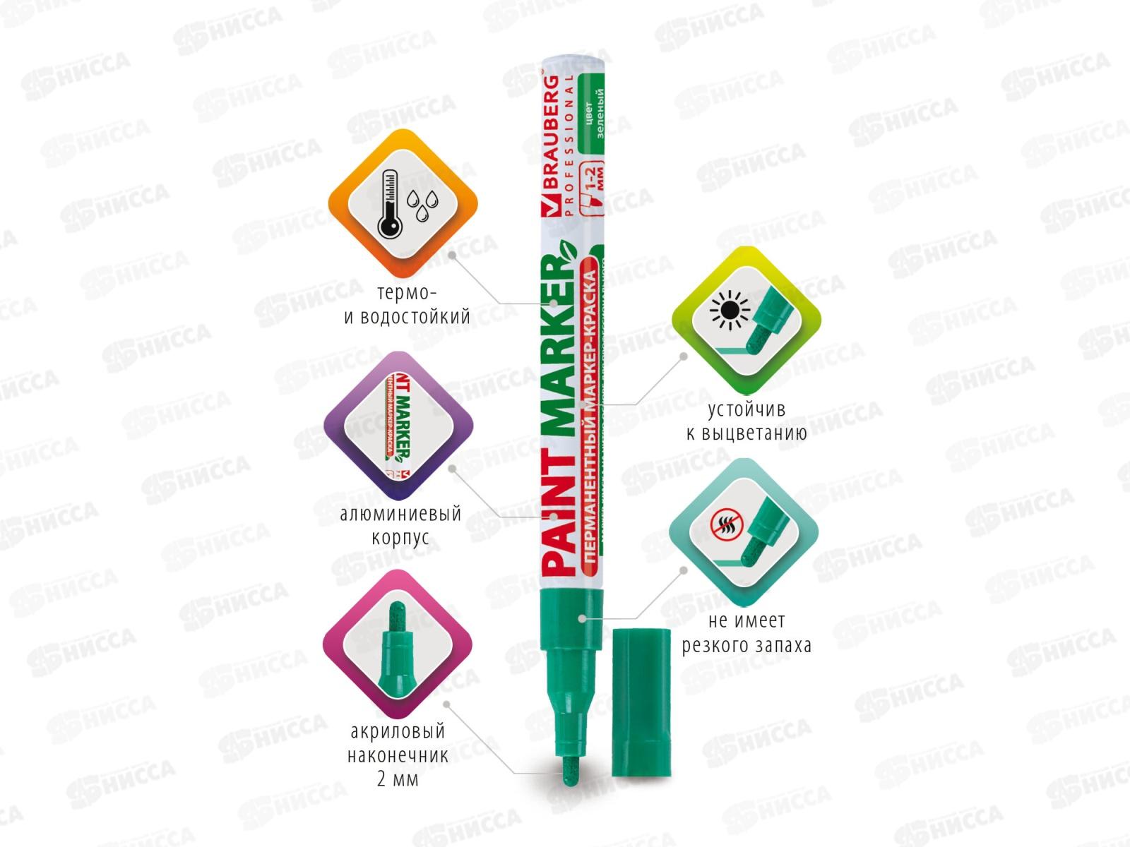 Маркер-краска BRAU лаковый зеленый, 2мм б/запаха алюм.корпус 150870 *12