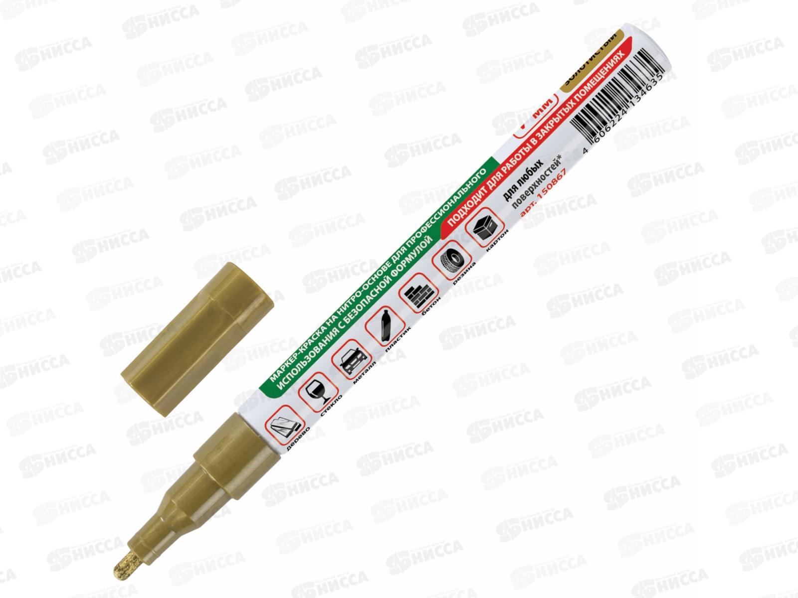 Маркер-краска BRAU лаковый золотой,2мм б/запаха алюм.корпус 150867 *12