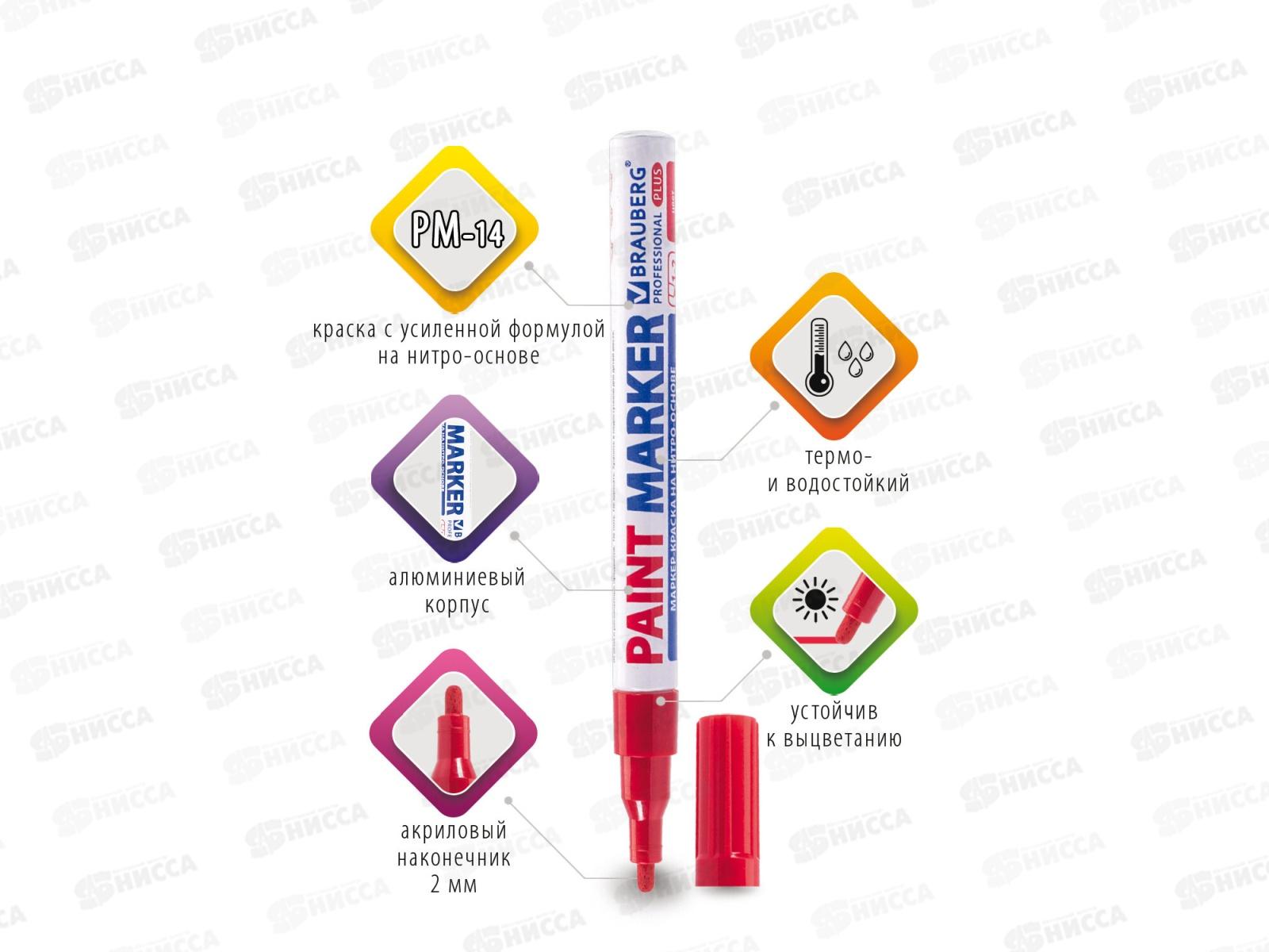 Маркер-краска лаковый BRAUBERG предназначен для маркировки различных материалов в промышленных условиях: бетона, дерева, стекла, металла, резины, пластика. Заправлен краской с усиленной формулой на нитро-основе РМ-14.