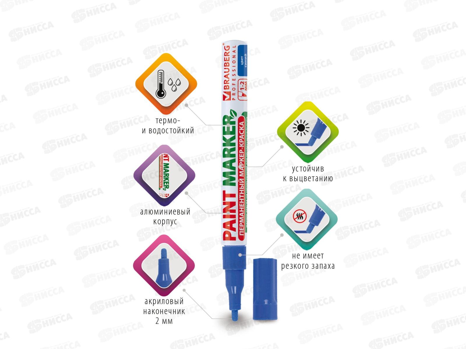 Маркер-краска BRAU лаковый синий, 2мм б/запаха алюм.корпус 150864 *12