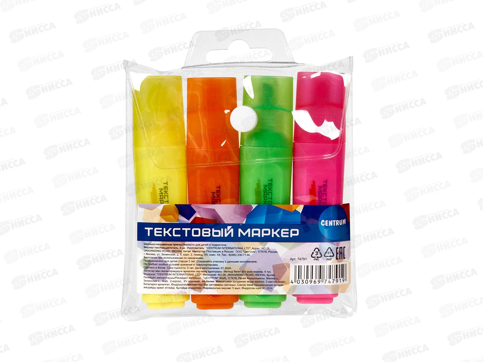 Маркеры CENTRUM текст. 4цв, роз,желт.,зел.,оранж. 74791 *36