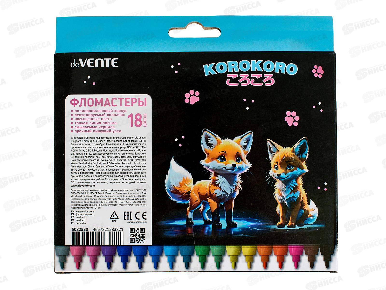 Фломастеры 18цв. deVente Korokoro вент.колп. к/к 5082530 *12