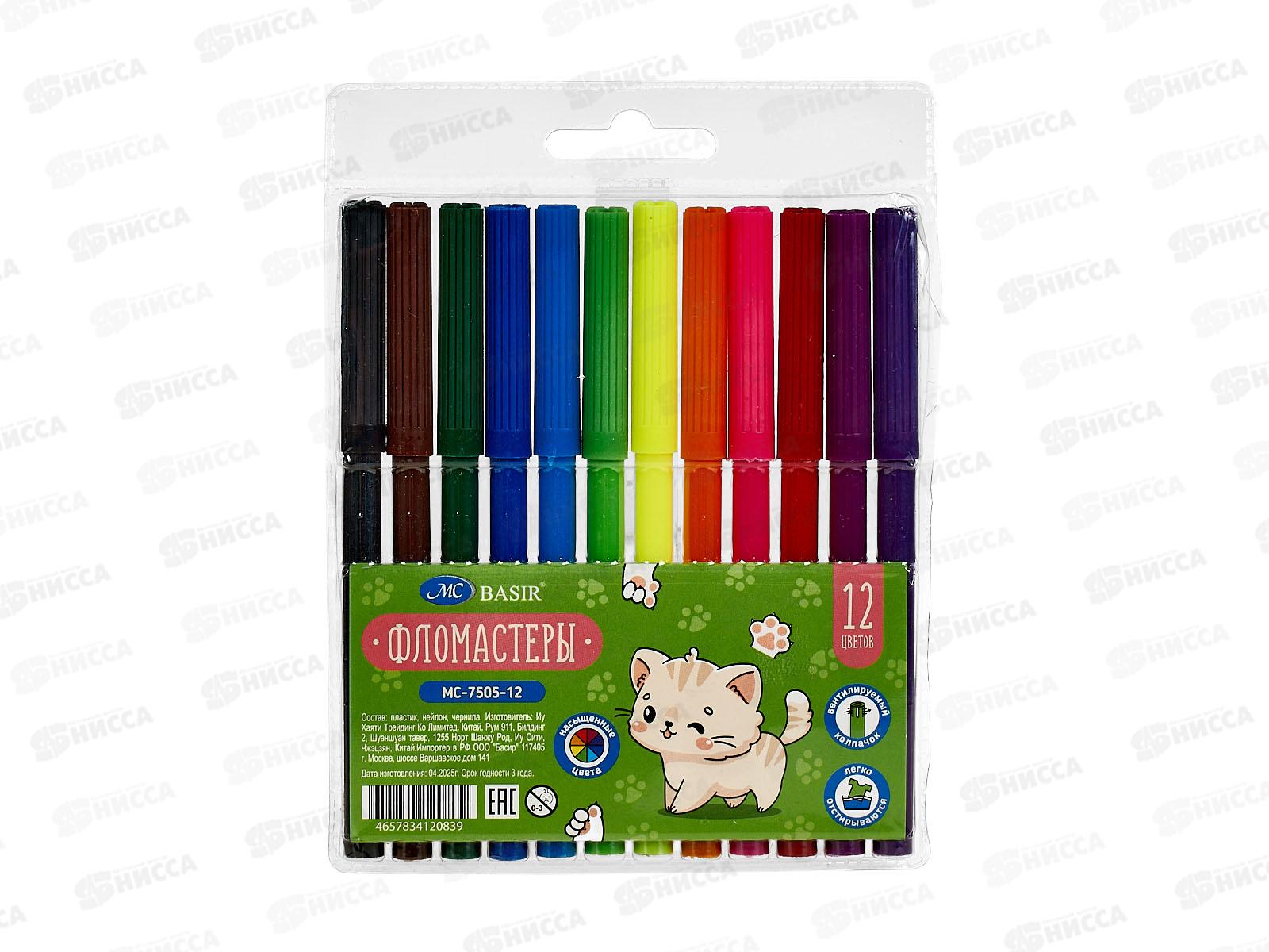 Фломастеры 12цв. BASIR "Котята" цв.корпус, вент. MC-7505-12 *12/240