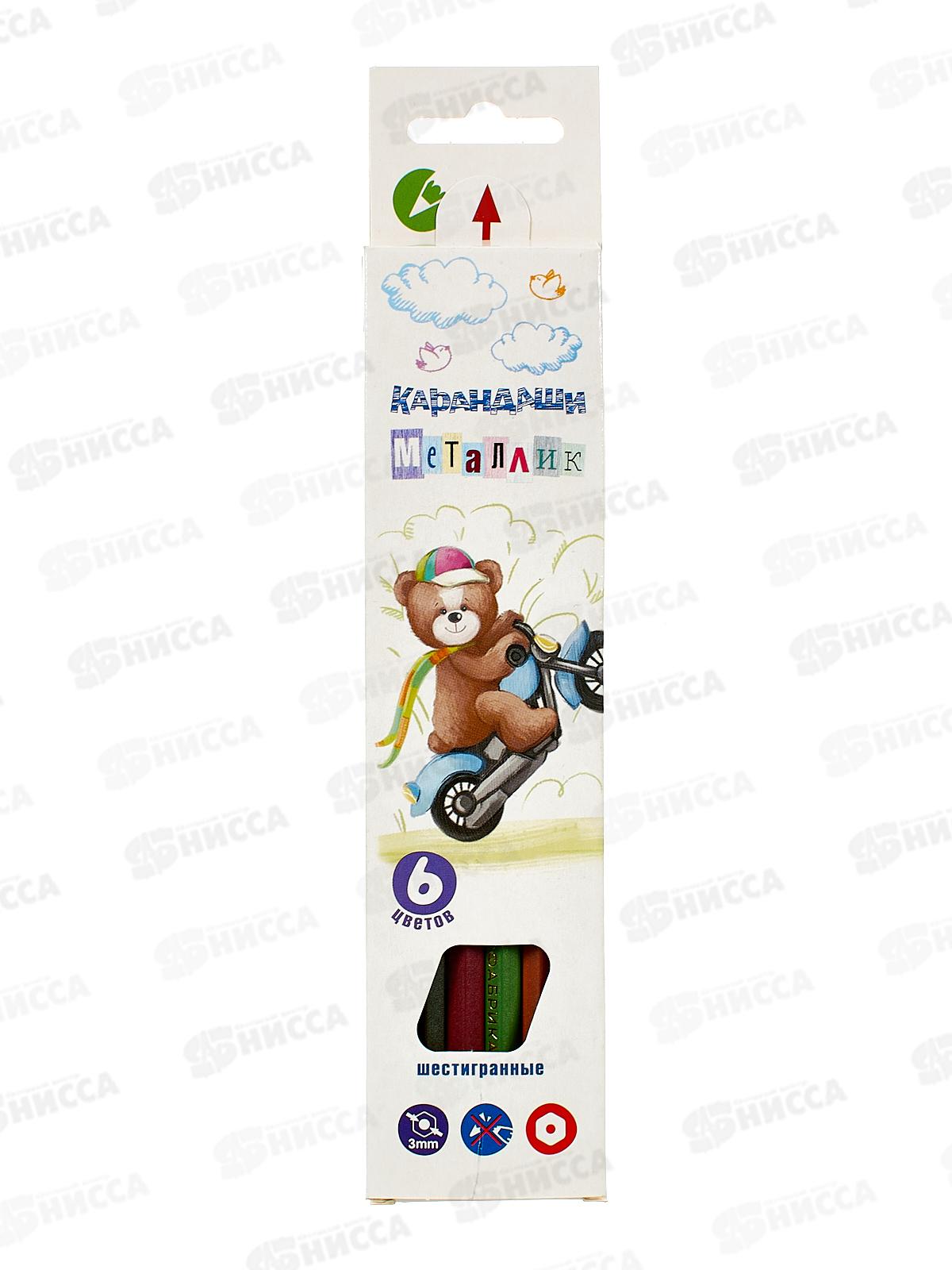 Карандаши 6цв "Мишка" металлик, заточенные МCP-9006*8/96