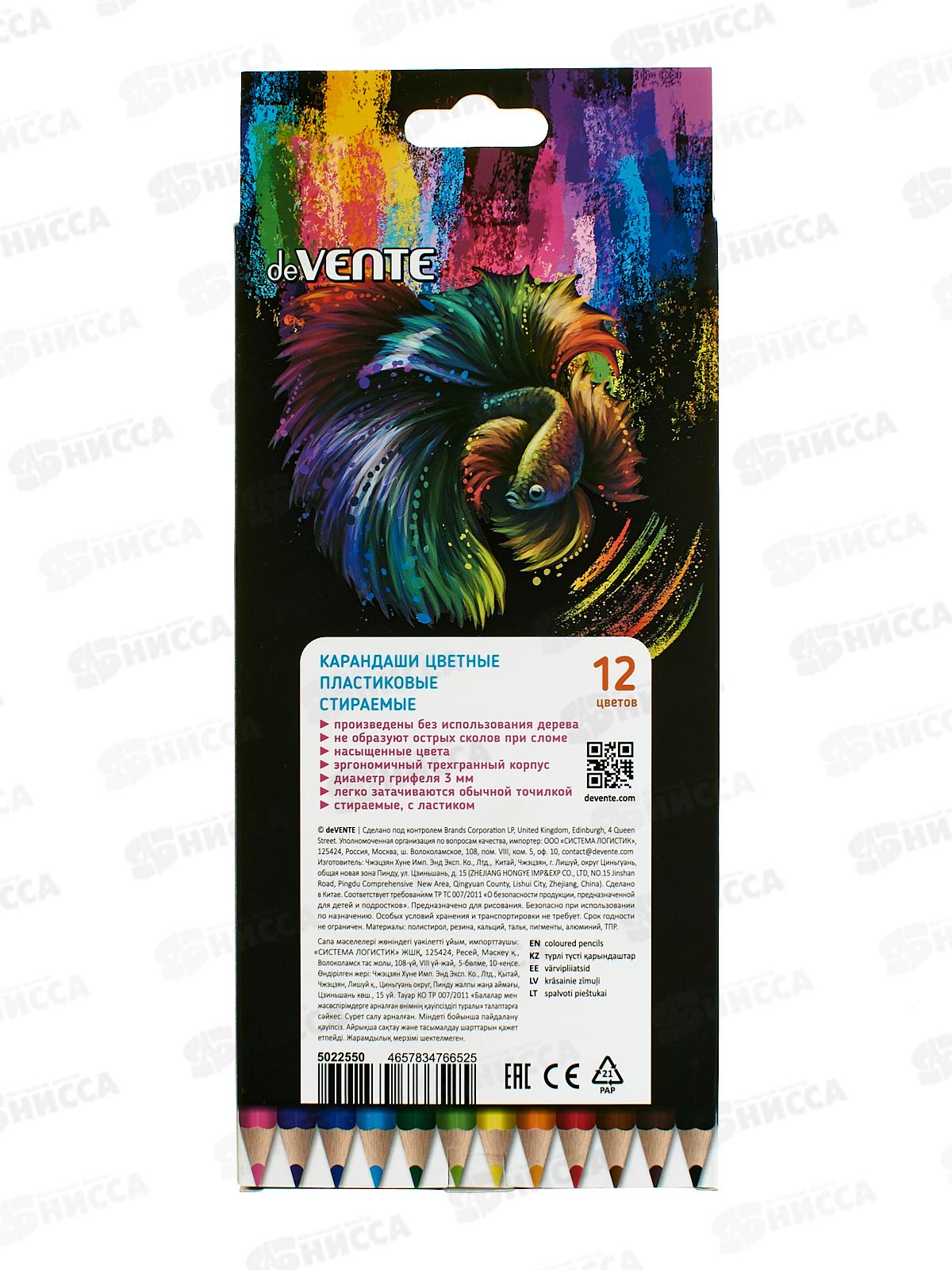 Карандаши 12цв deVente Triolino Erase трехгр. стир-е 5022550 *12/240
