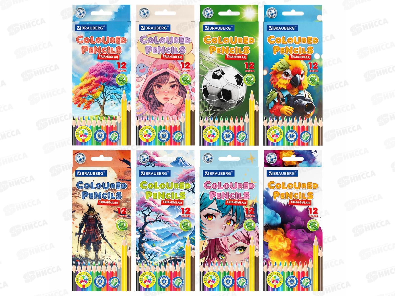 Карандаши 12цв BRAU Ассорти 8 диз. 7-14лет трехгран. 182056 *12/240