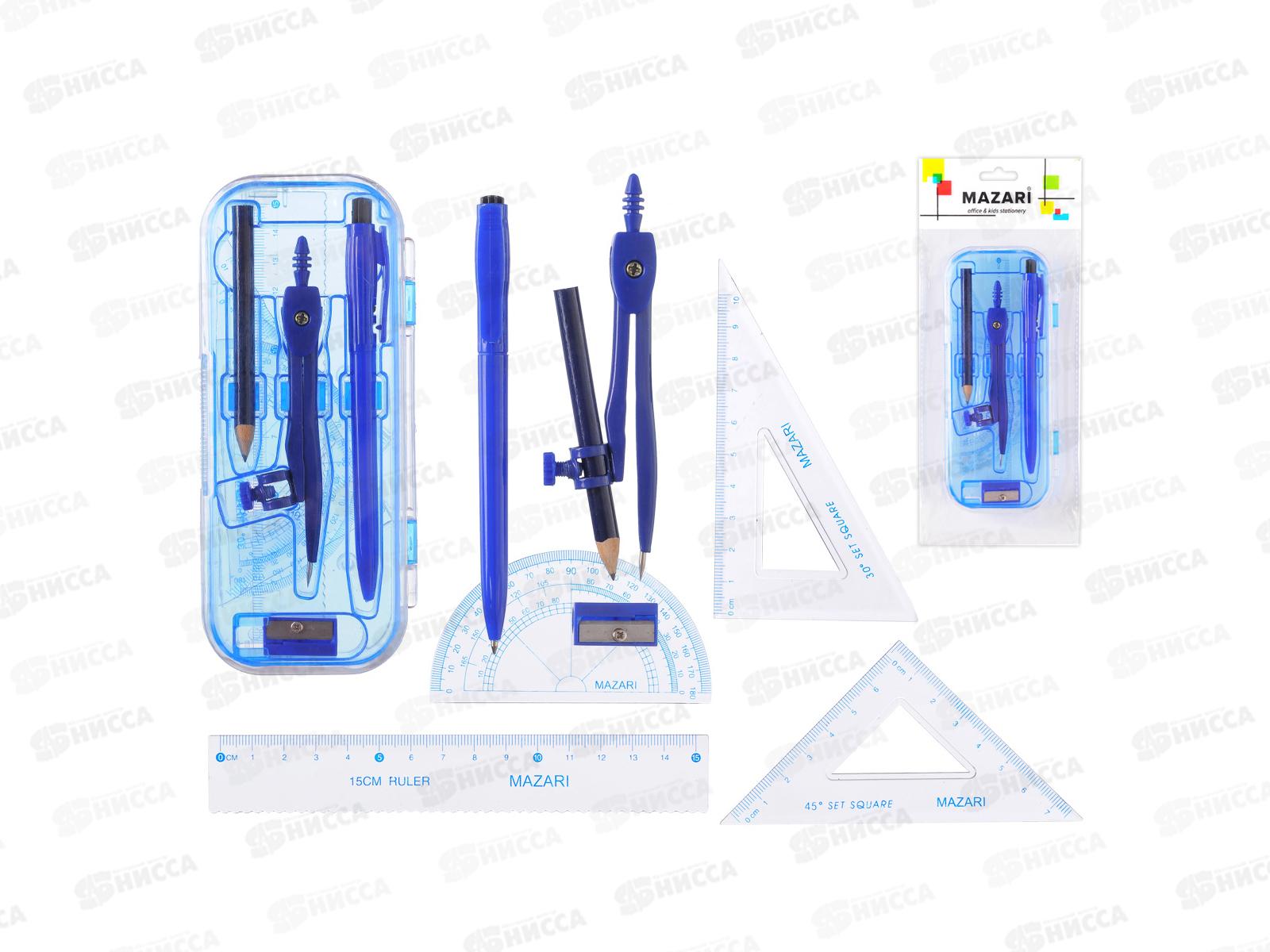 Готовальня MAZARI 8 предметов (циркуль , 2 карандаша , 2 угольных линейки 15, транспортир , точилка), M-4502 *12/144