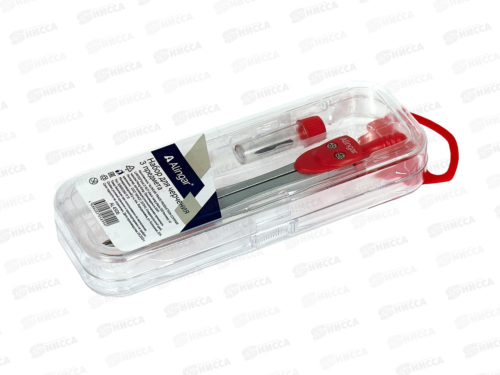 Готовальня Alingar 3пр., мет.цирк.гриф., точилка пл.фут. AL4506 *20