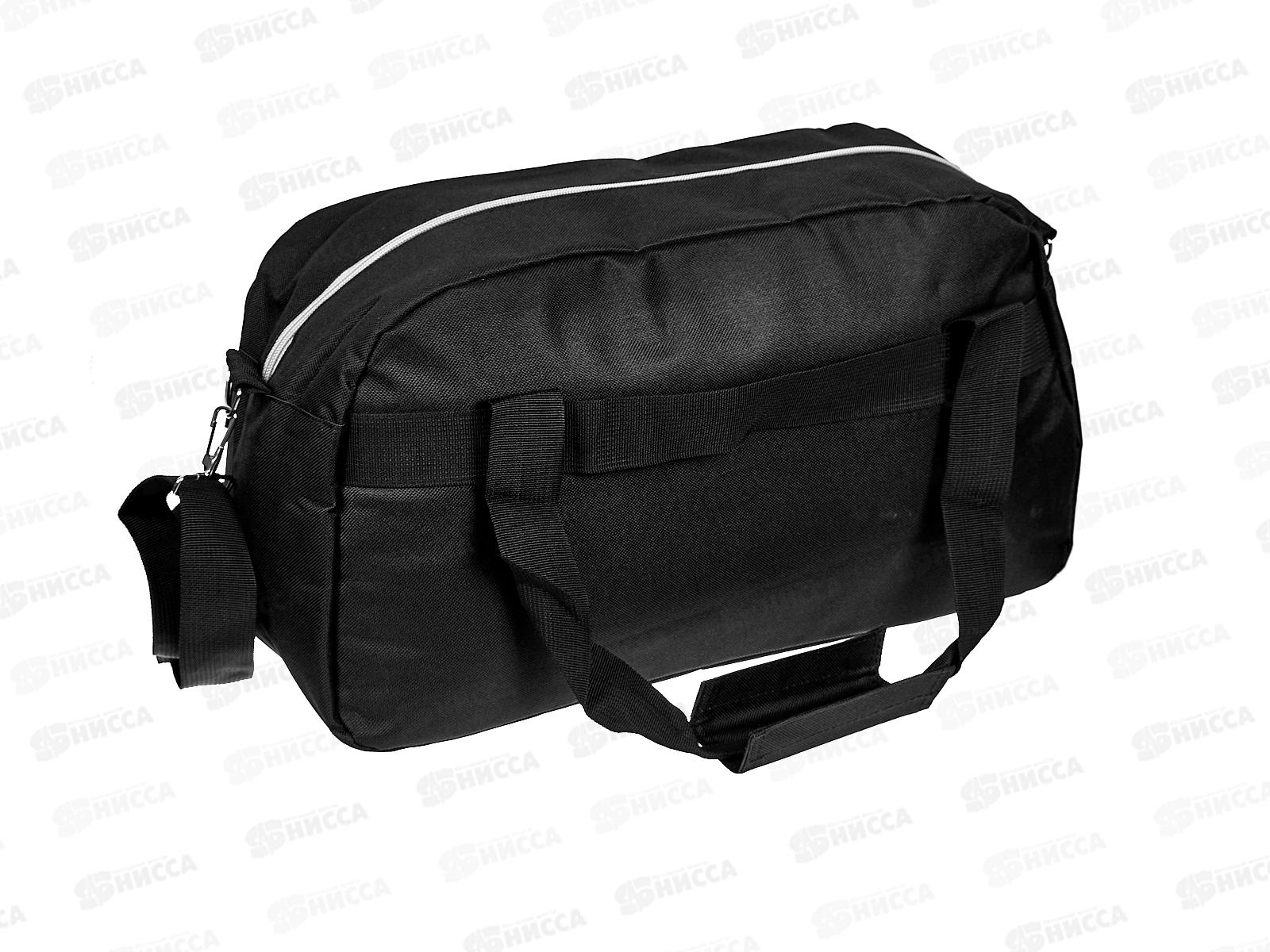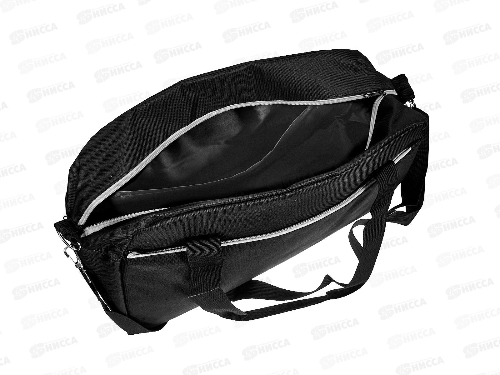 Сумка тканевая спортивная, с ремнем, черная с серым 45*25*17, СМ-2023