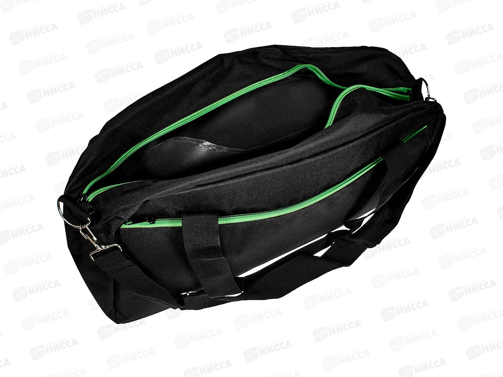 Сумка тканевая спортивная, с ремнем, черная с зелен. 45*25*17, СМ-2022