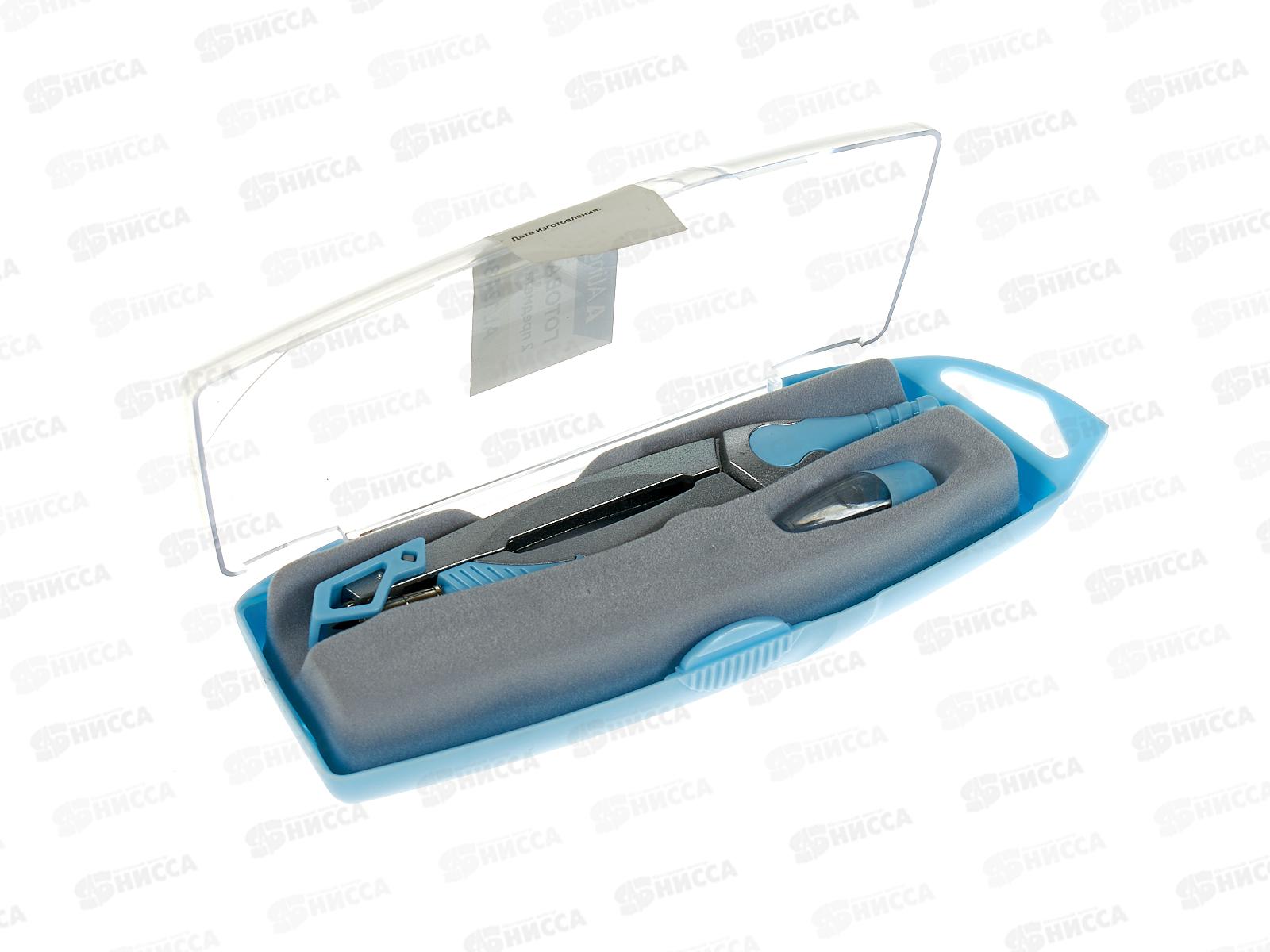 Готовальня Alingar 2пр., циркуль,пласт.фут.,голубой AL12484 *12