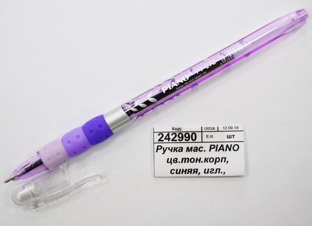 Ручка масляная PIANO цветной тонированный корпус, синяя, игла, PT-272 *50/1200