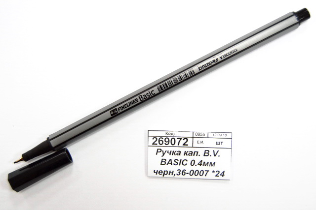 Ручка капиллярная B.V. BASIC 0.4мм черная,36-0007 *50