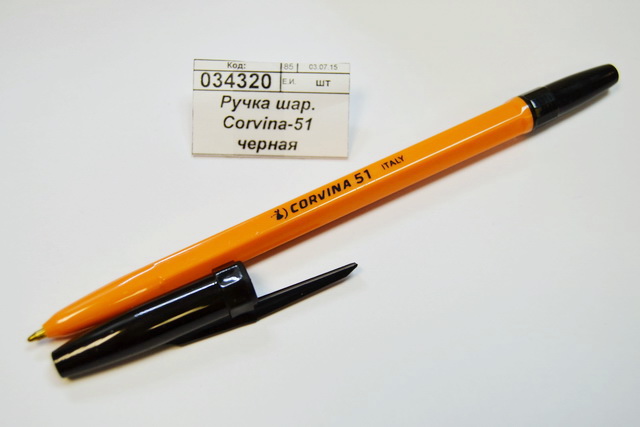 Ручка шариковая Corvina-51 черная (желтый корпус) 40163/01G *50/2400