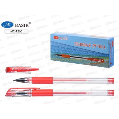 Ручка гелевая BASIR MC-1266 резиновый держатель красная *12/144/1728