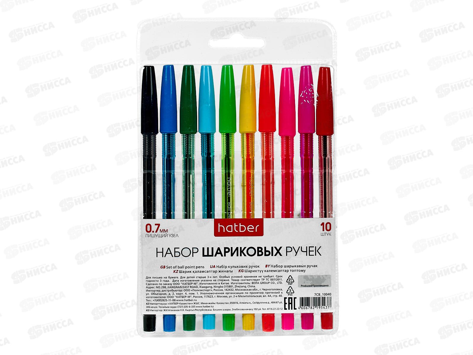 Ручки масляная Hatber 10цв 10040*12