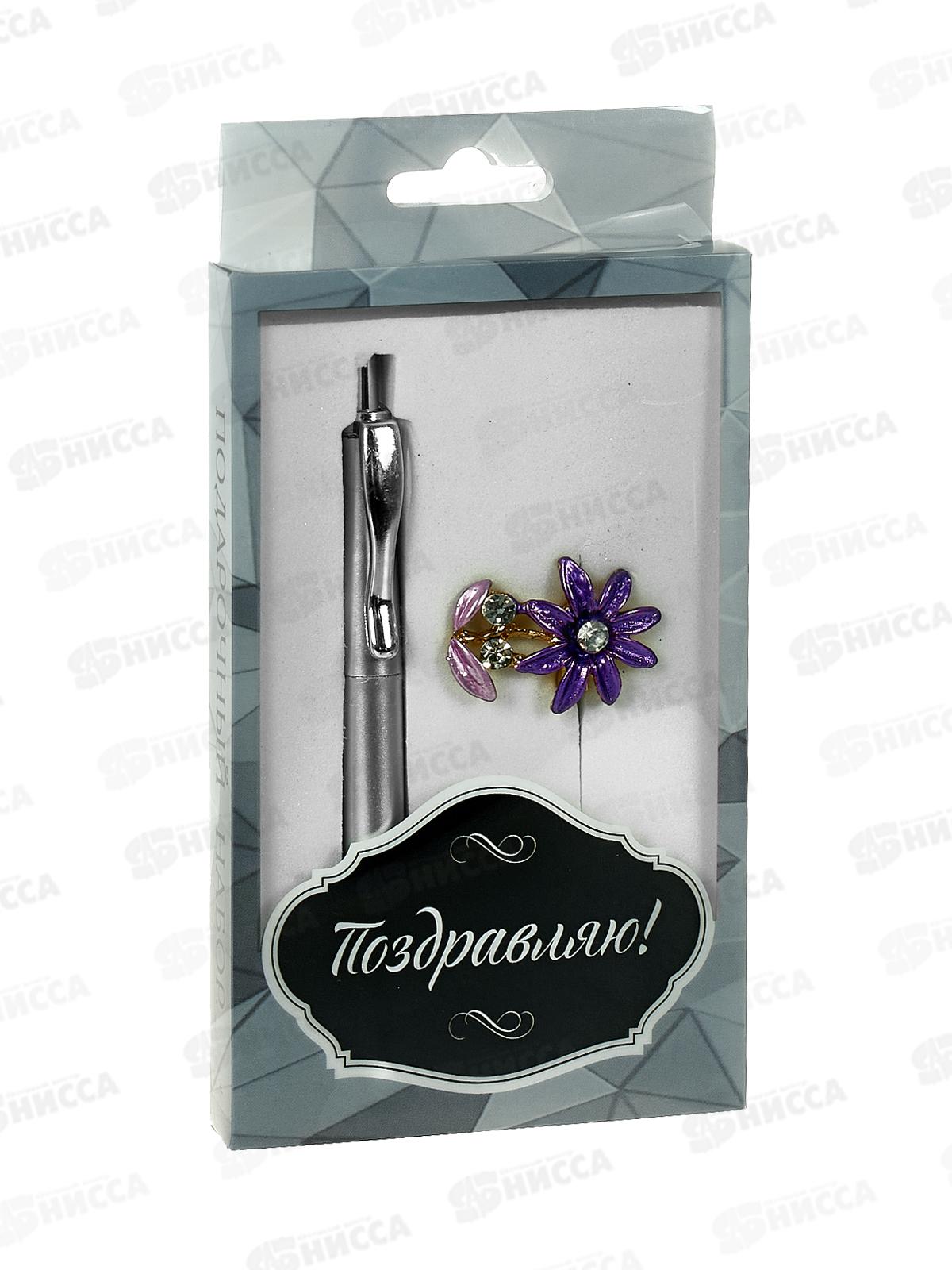 Состав набора: ручка шариковая, брошь