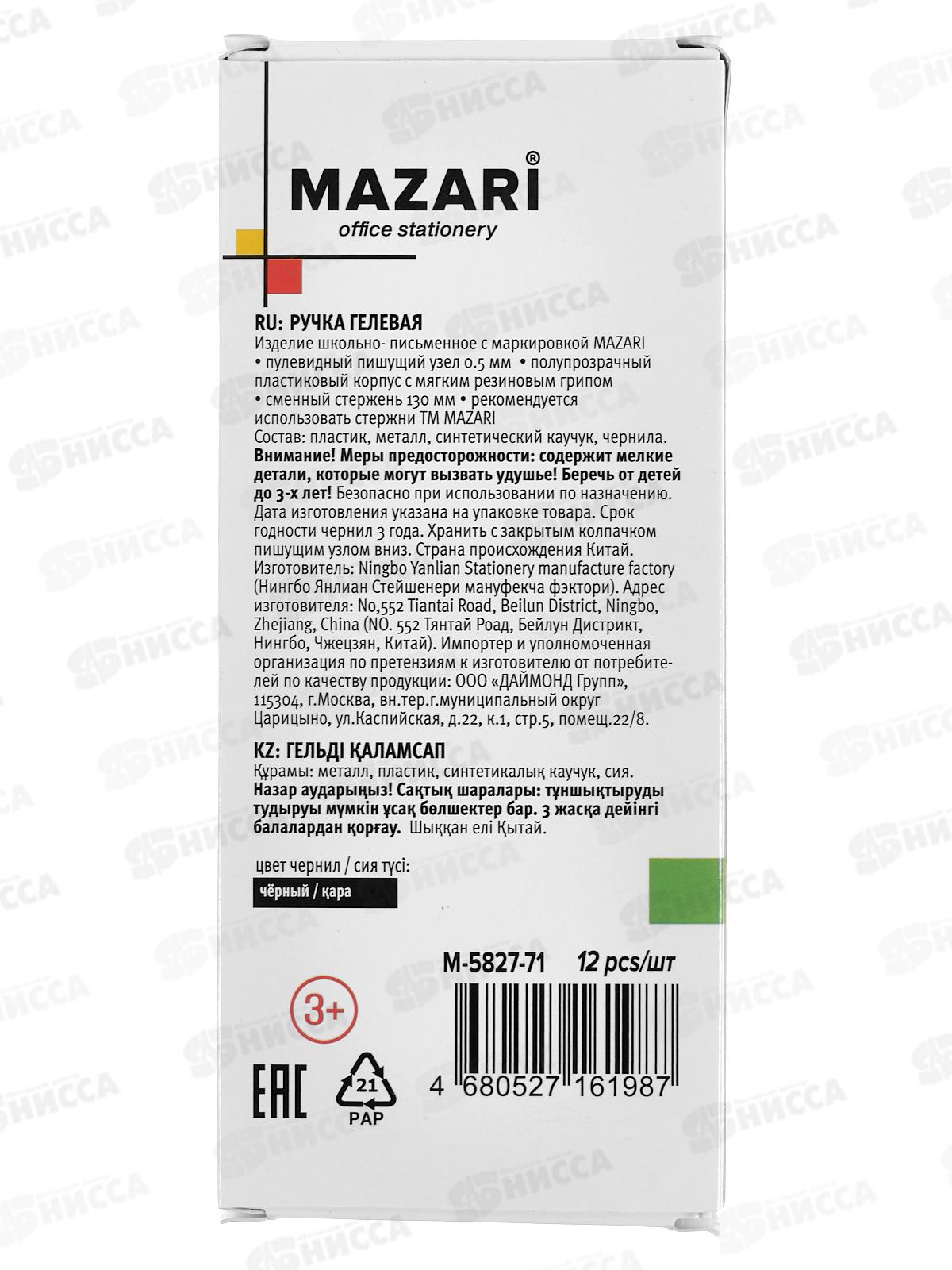 Ручка гел. MAZARI Cielo 0.5мм, п/прозр.корп., черная. M-5827-71 *12