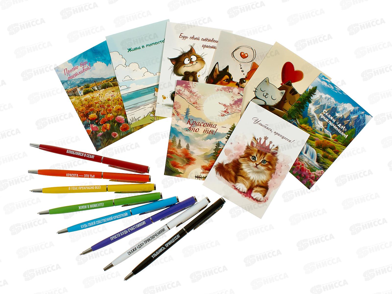 Набор ручек с надписями для девушек обеспечивает лёгкое и мягкое письмо. Быстро высыхающие чернила не размазываются и имеют насыщенные цвета. Цветной корпус. В составе набора: 8 шт с чернилами синего цвета. Диаметр: 0,7 мм. Открытки в комплекте.