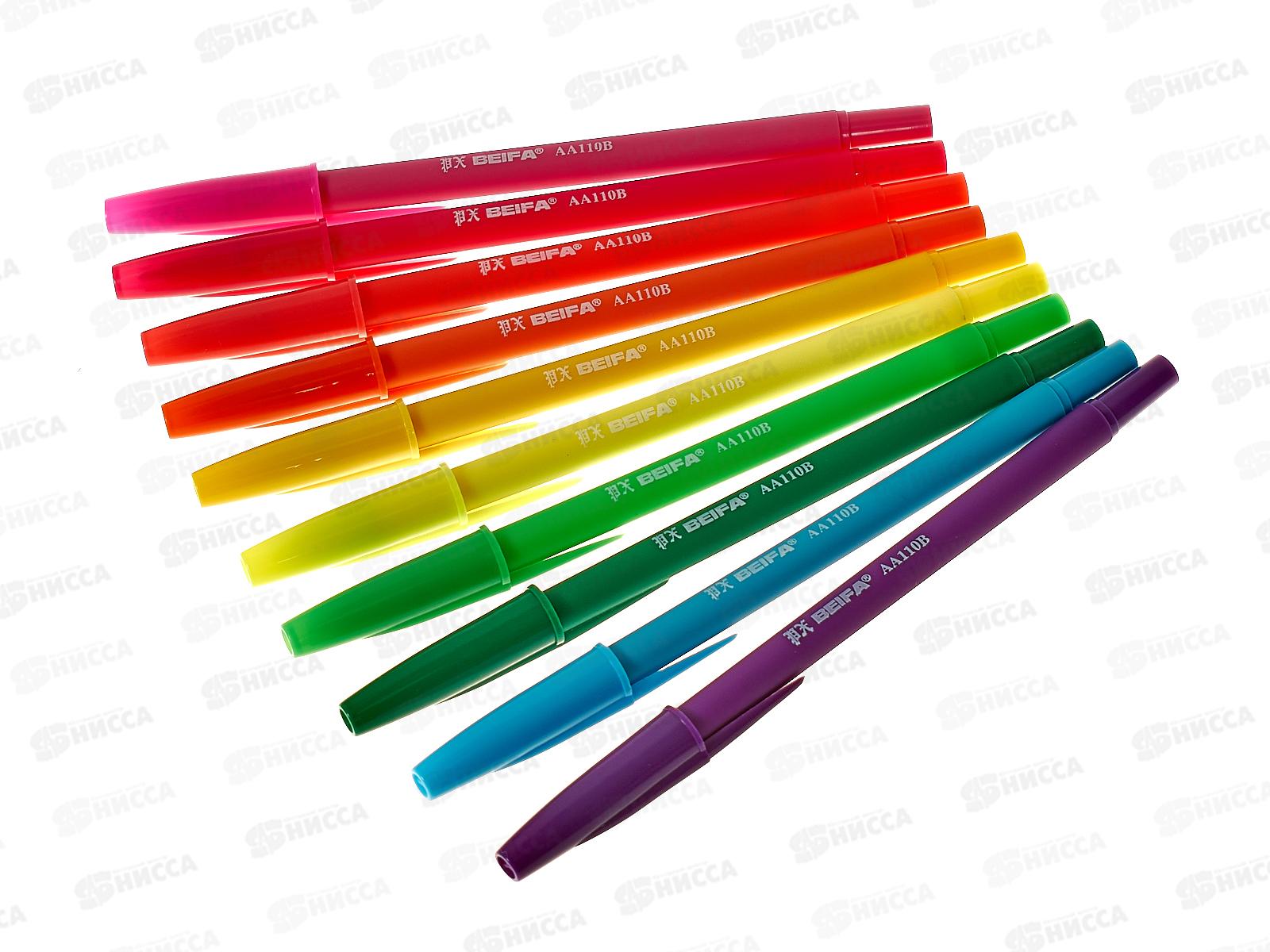 Ручка шариковая, антискользящий корпус, Beifa АА 110В. Яркое цветное ассорти, металлический наконечник, стержень синий, узел 0,7 мм.