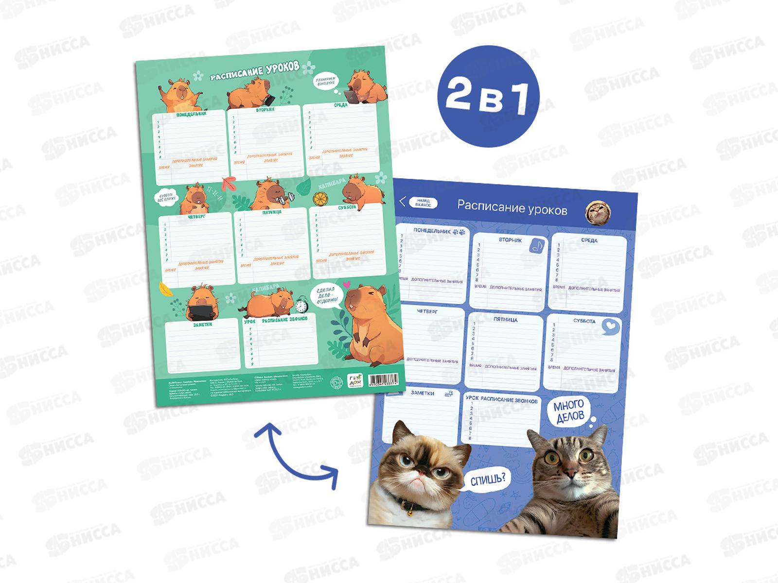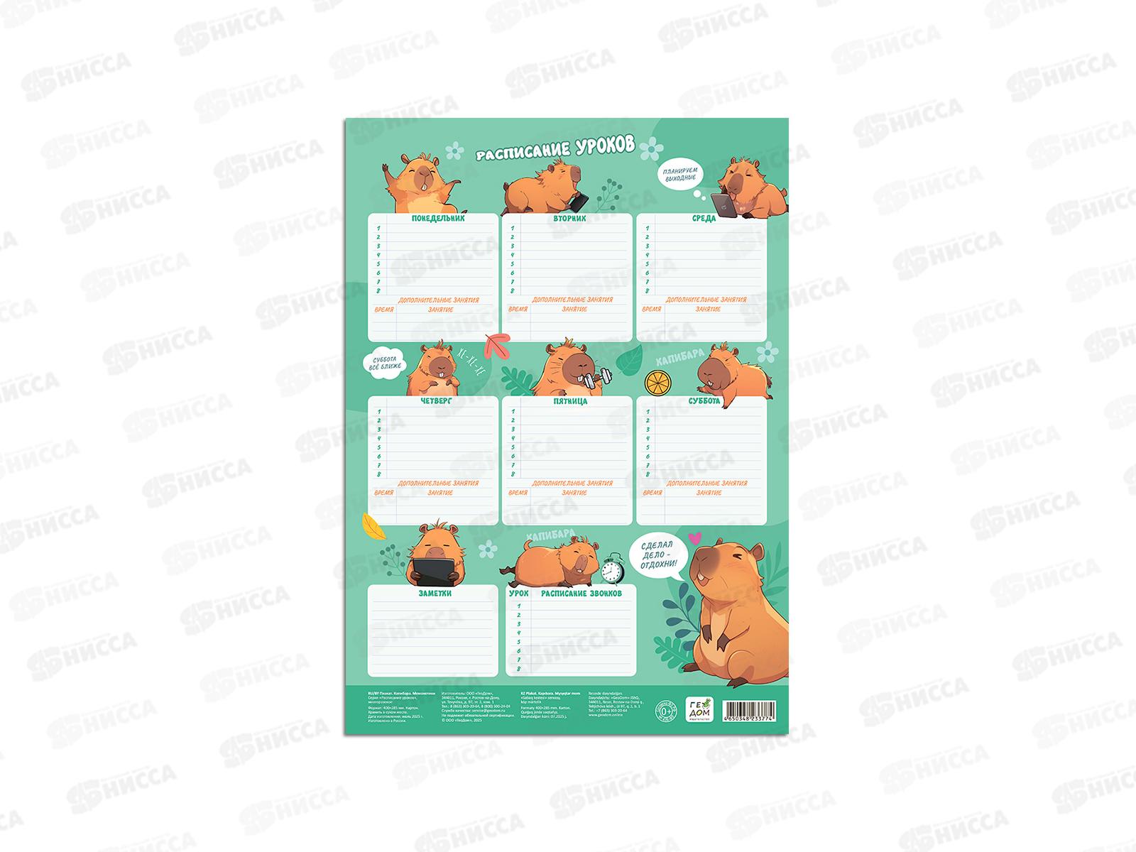 Расписание уроков ГД. Капибара+Мемокотики А3 многораз, 33774