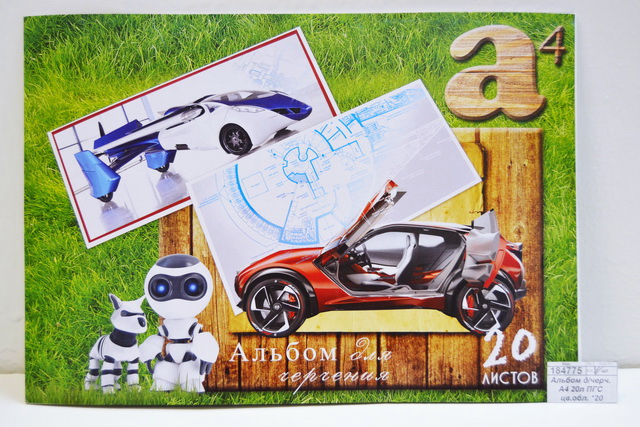 Альбом для черчения в обложке из целлюлозного картона. Внутренний блок-офсет, 20 листов.