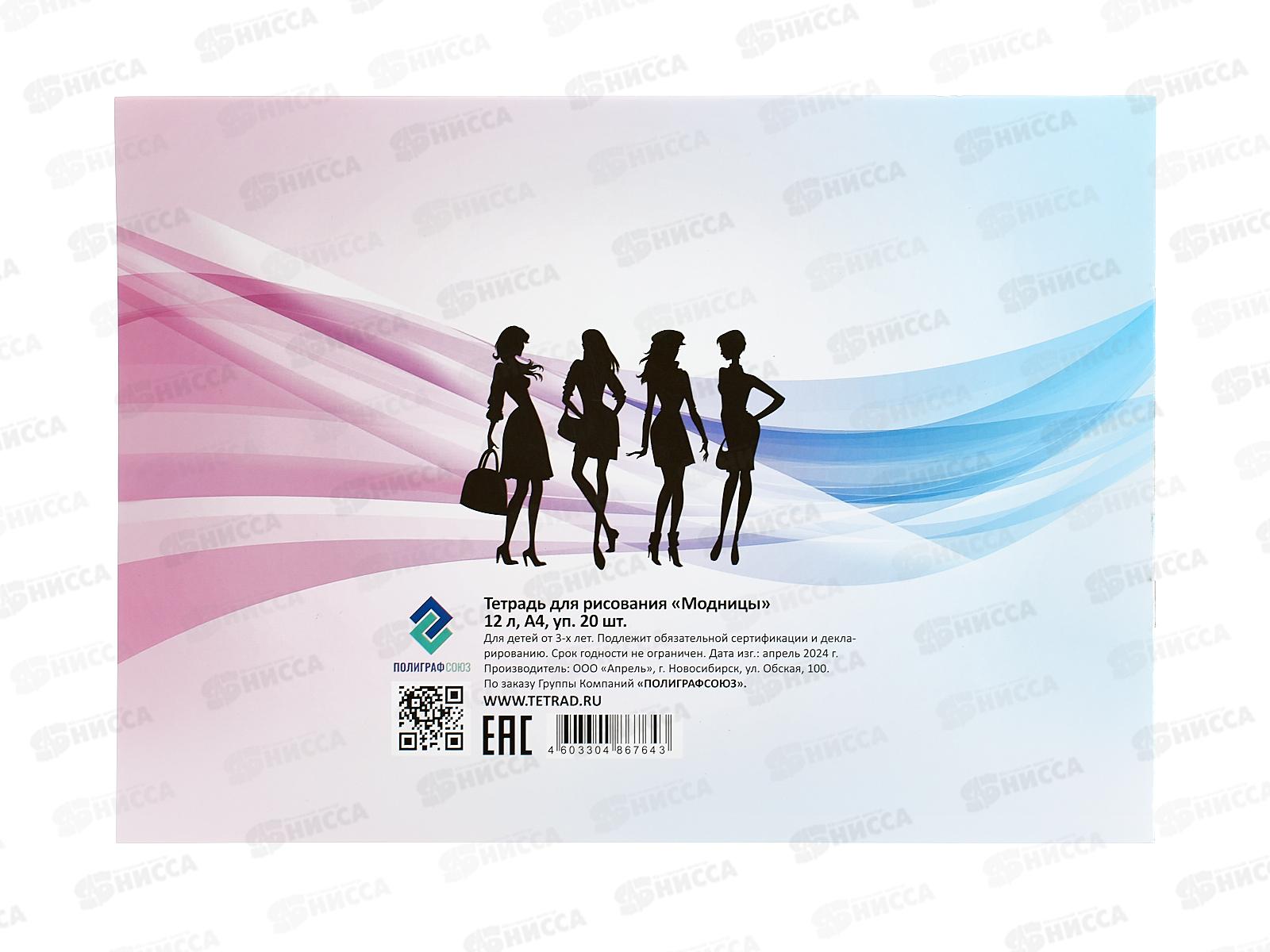Альбом для рисования 12листов ПГС Модницы, на скрепке *20