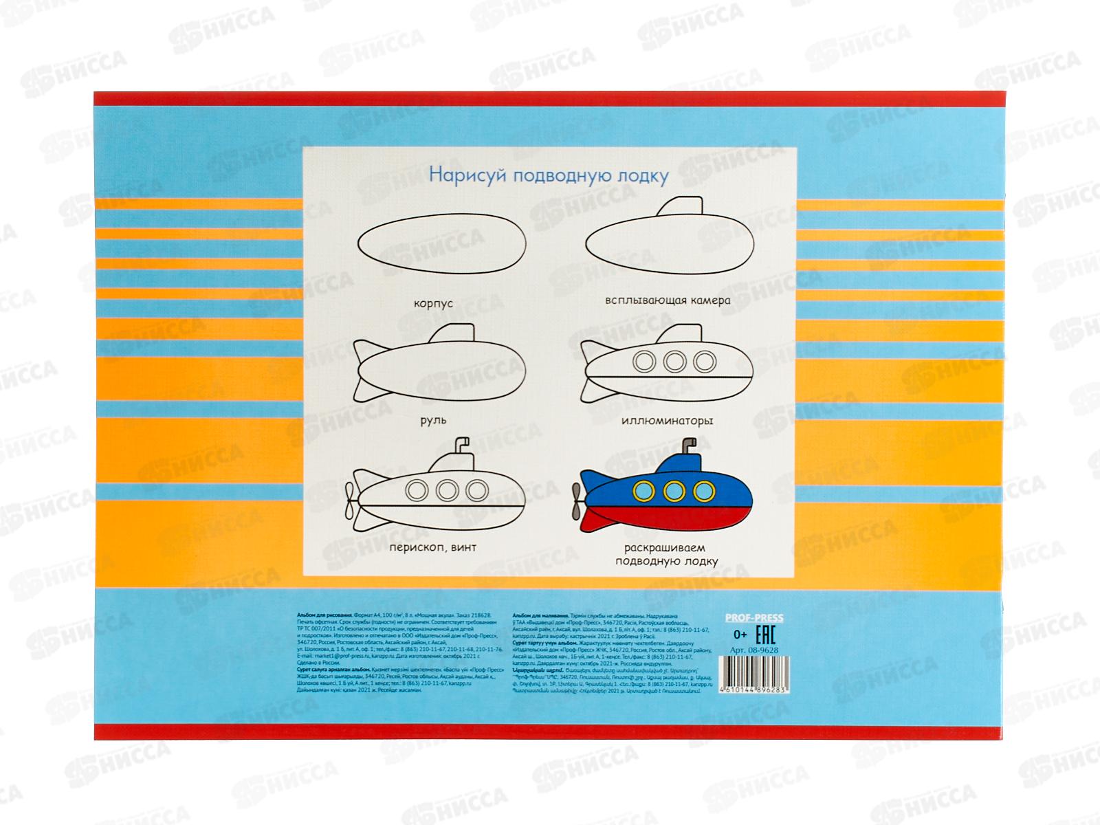 Альбом для рисования 8л ПП Мощная акула, 08-9628