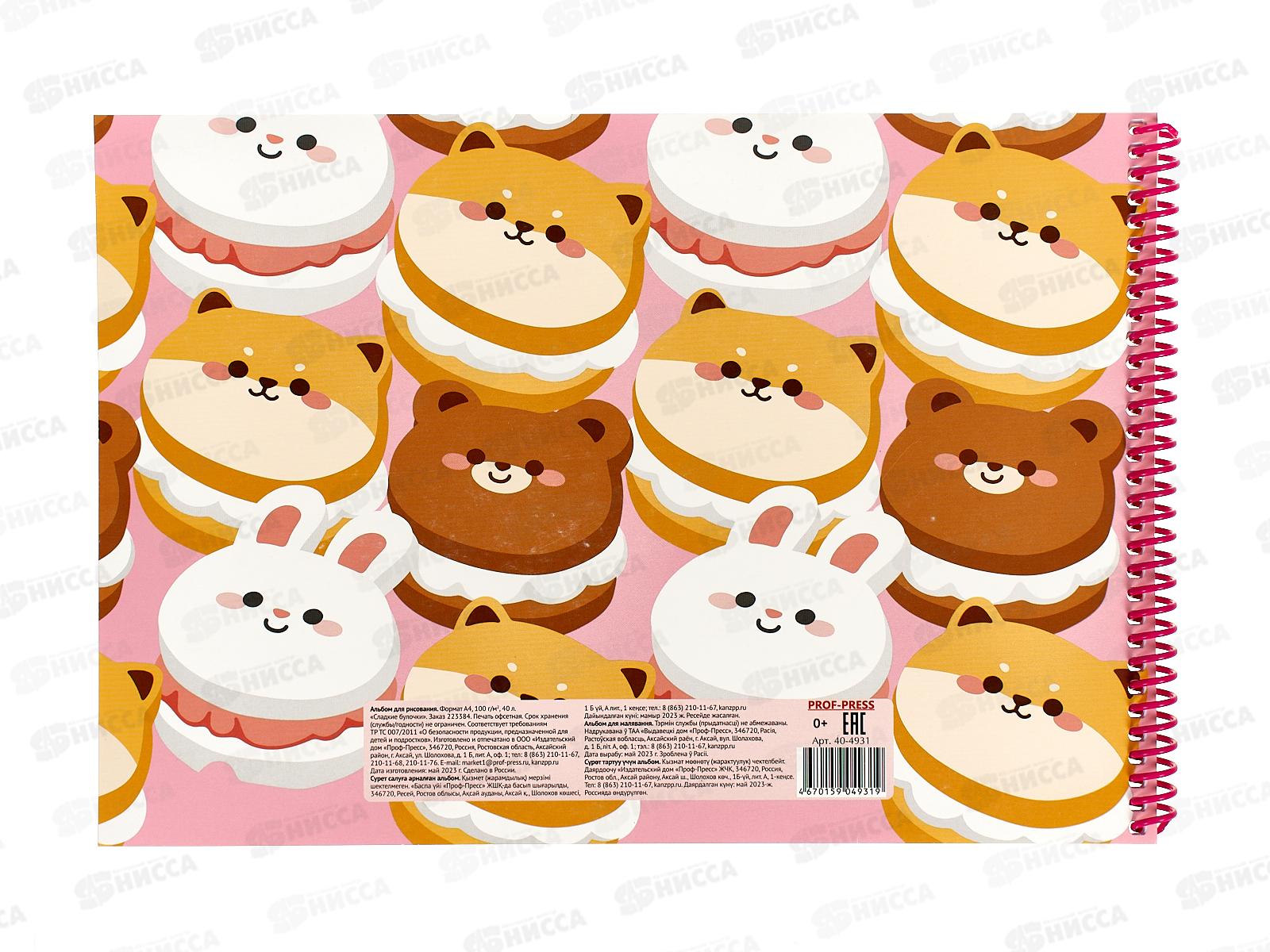 Альбом для рисования 40л ПП Сладкие булочки, гребень, 40-4931 *10