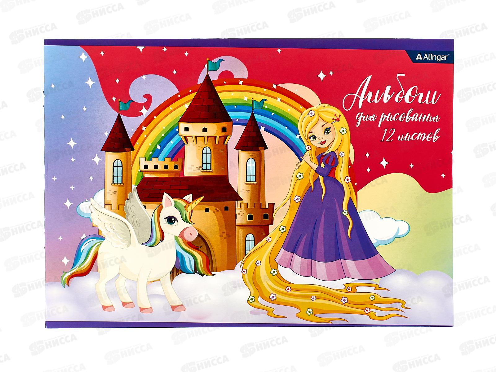 Альбом для рисования 12л Alingar "Принцессы и цветы" mix, AL10764 *60