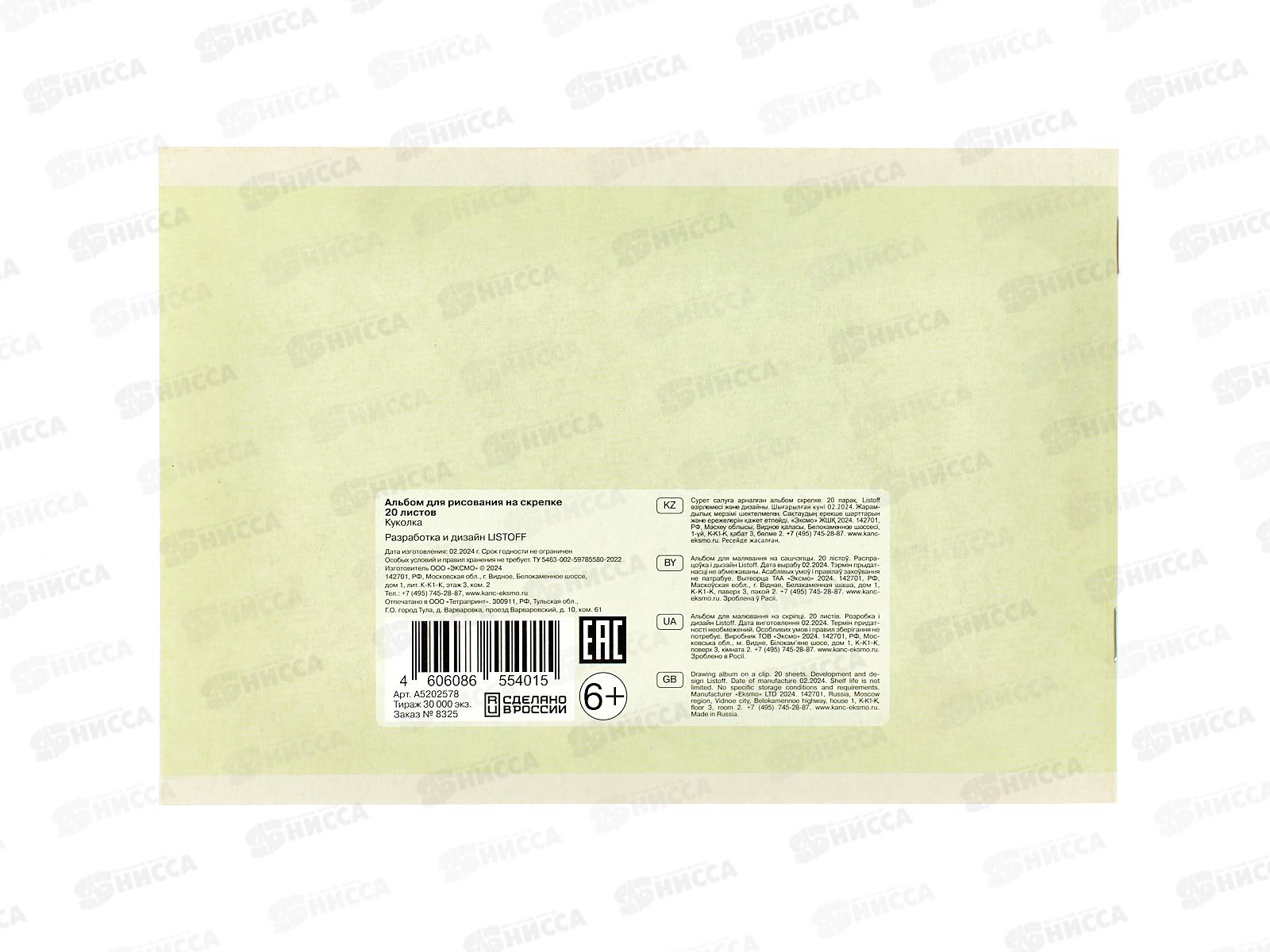 Альбом для рисования 20л ЭКСМ Куколка, мел.карт. А5 202578 *60