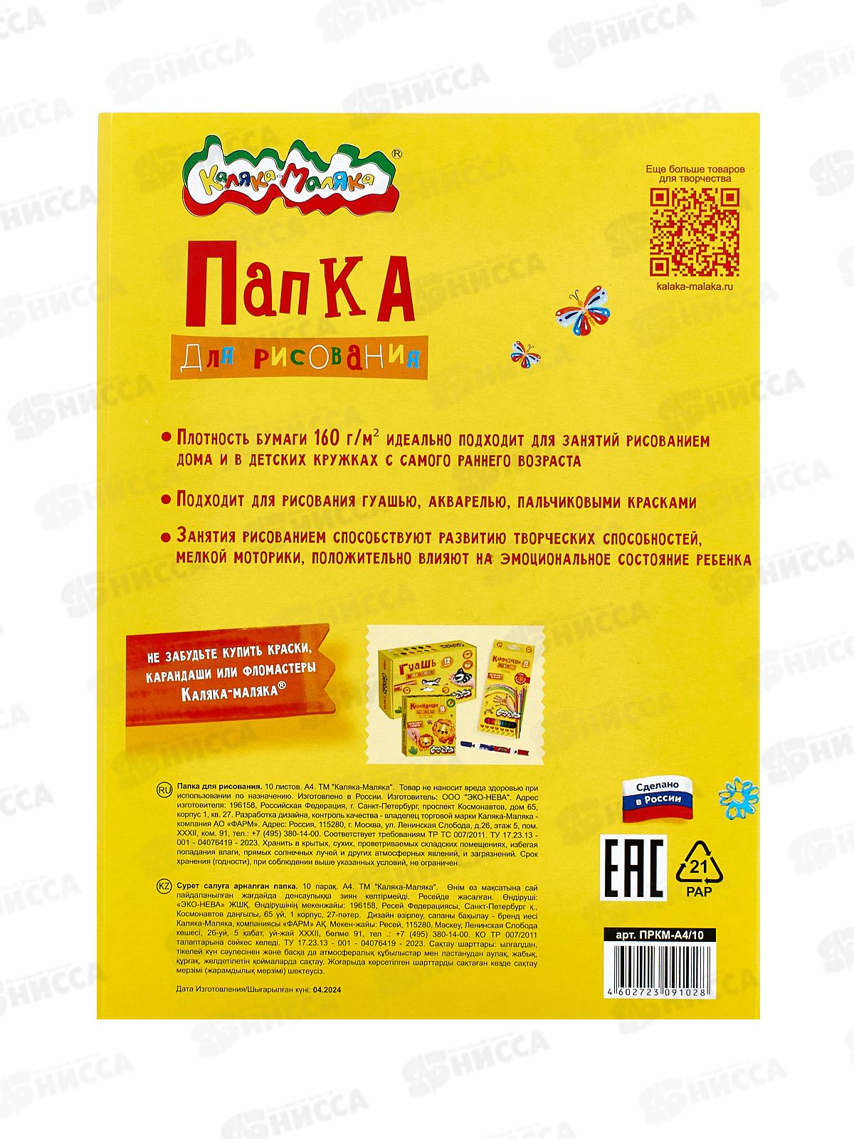 Папка д/рис. А4 10л Каляка-Маляка 160г/м2 ПРКМ-А4/10 *50