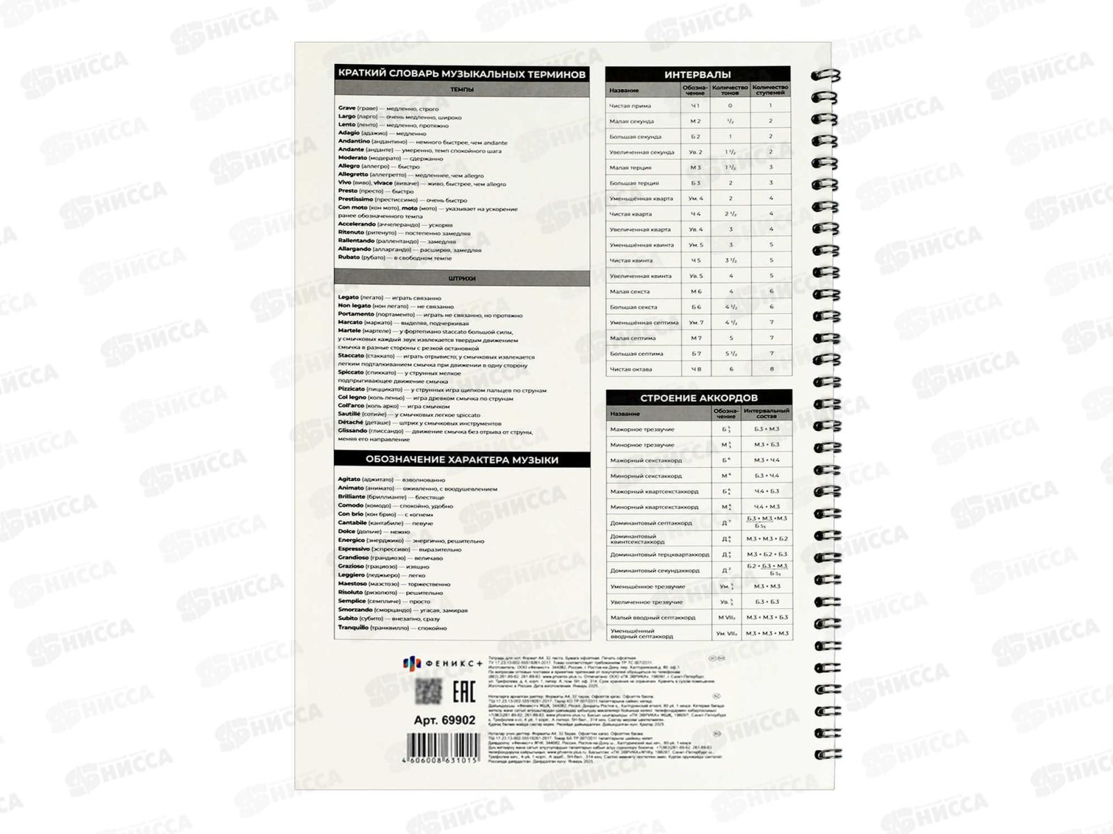 Тетрадь нотн. 32л ФЕН Энергия звука А4, греб. 69902 *20
