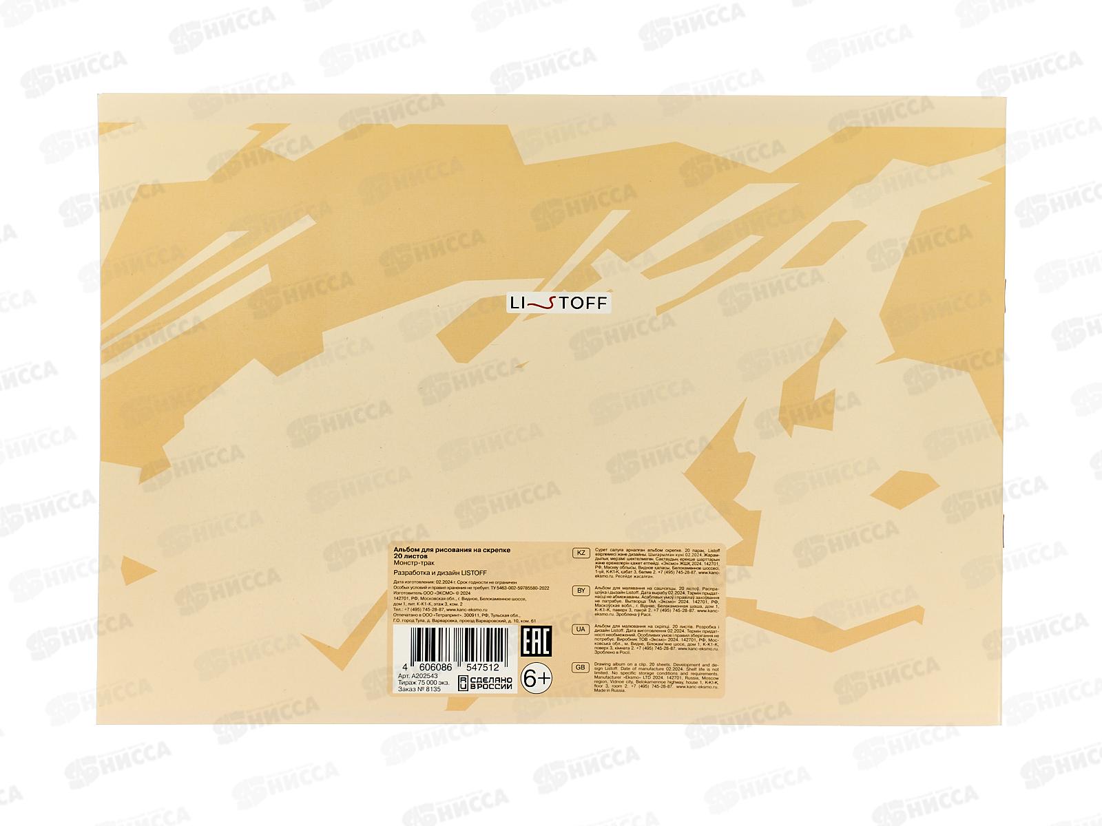 Альбом д/рис.20л ЭКСМ Монстр-трак, мел.карт.,скрепка , А202543 *50