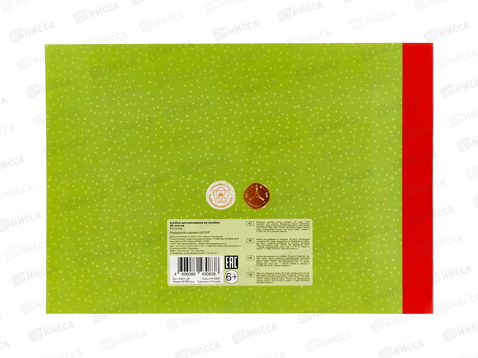 Альбом д/рис.30л ЭКСМ Кот и пес. мел.картон, склейка А302139 *50