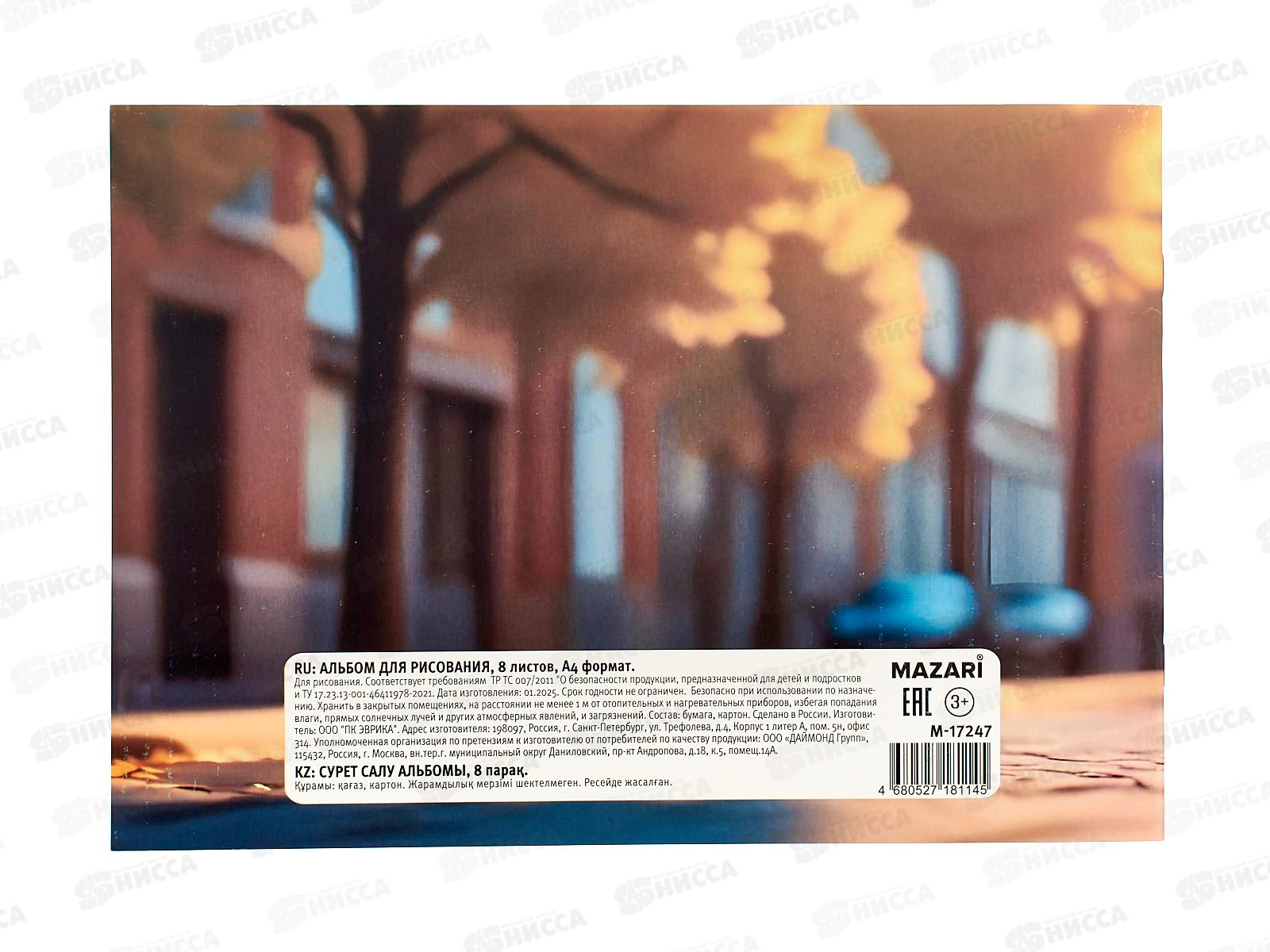 Альбом д/рис. 8л Mazari А4 мел.картон, офсет, скрепка М-17247 *12