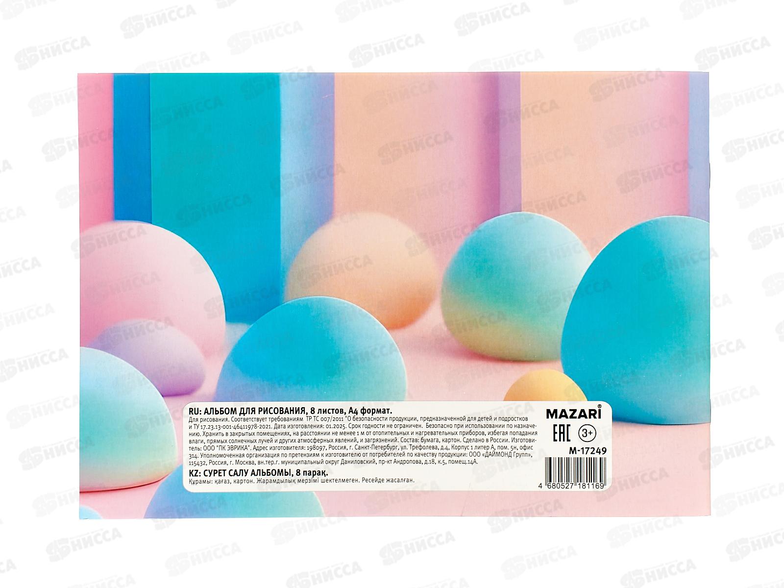 Альбом д/рис. 8л Mazari А4 мел.картон, офсет, скрепка М-17249 *12