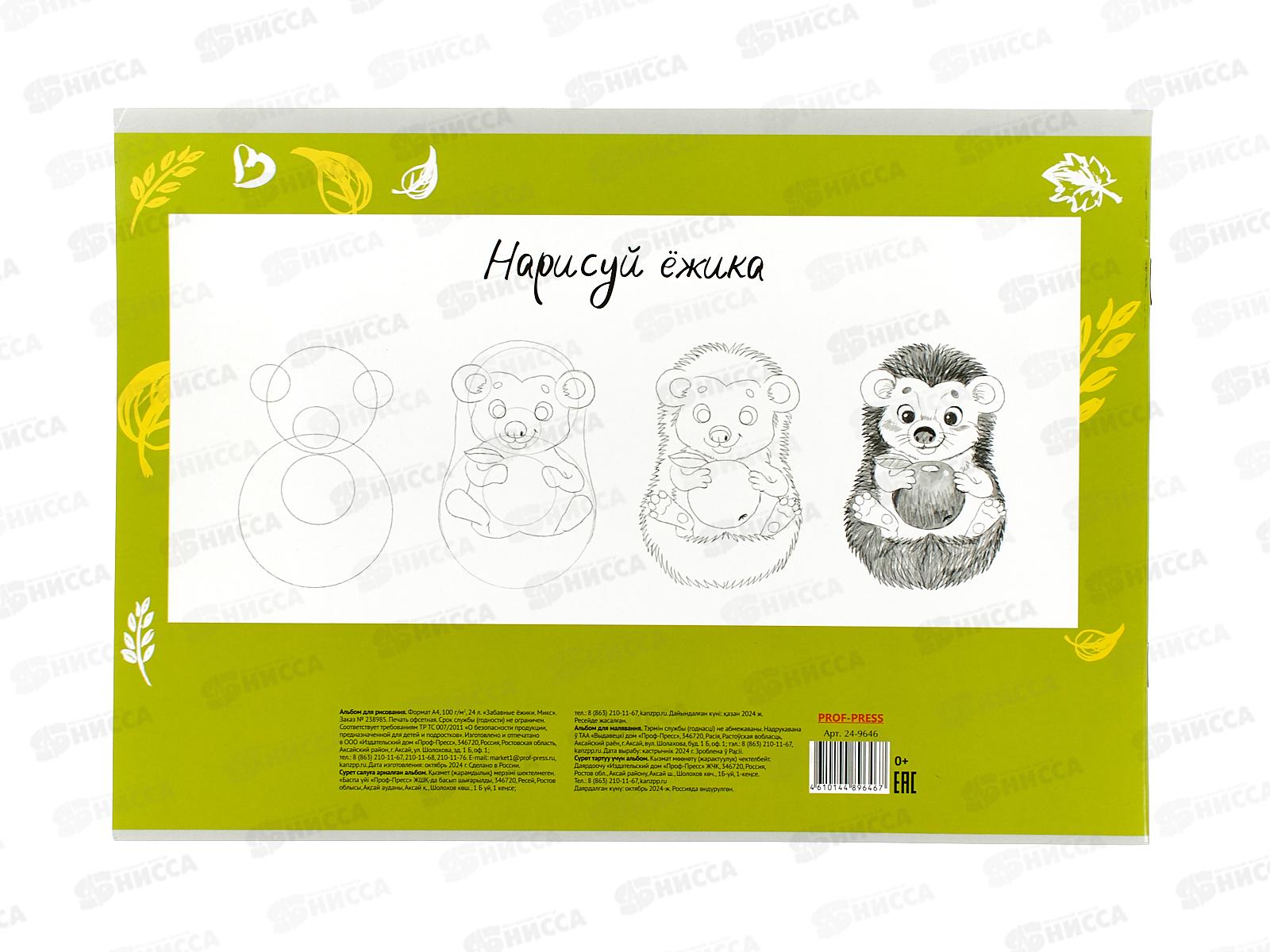 Альбом для рисования 24л ПП Забавные ёжики, 2 диз., 24-9646
