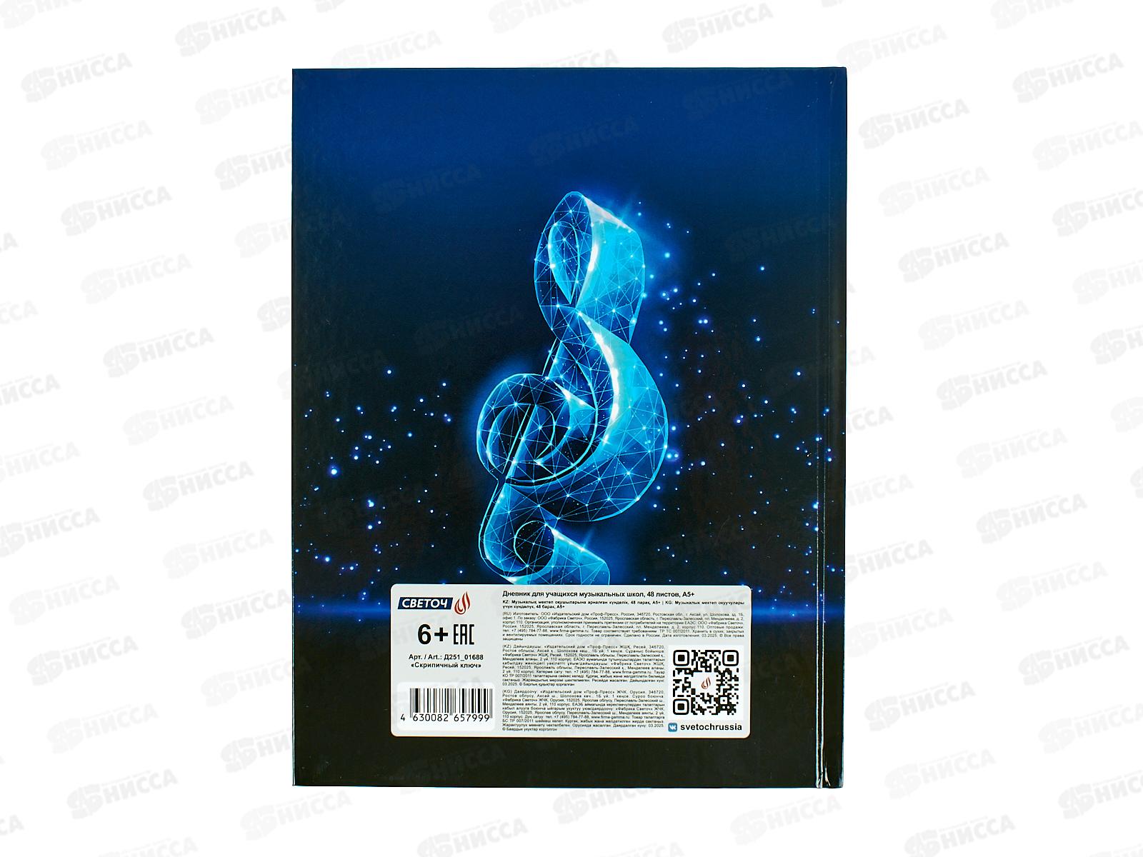 Дневник для музыкальных школ SVETOCH Скрипичный ключ, 48л, 01688 *4