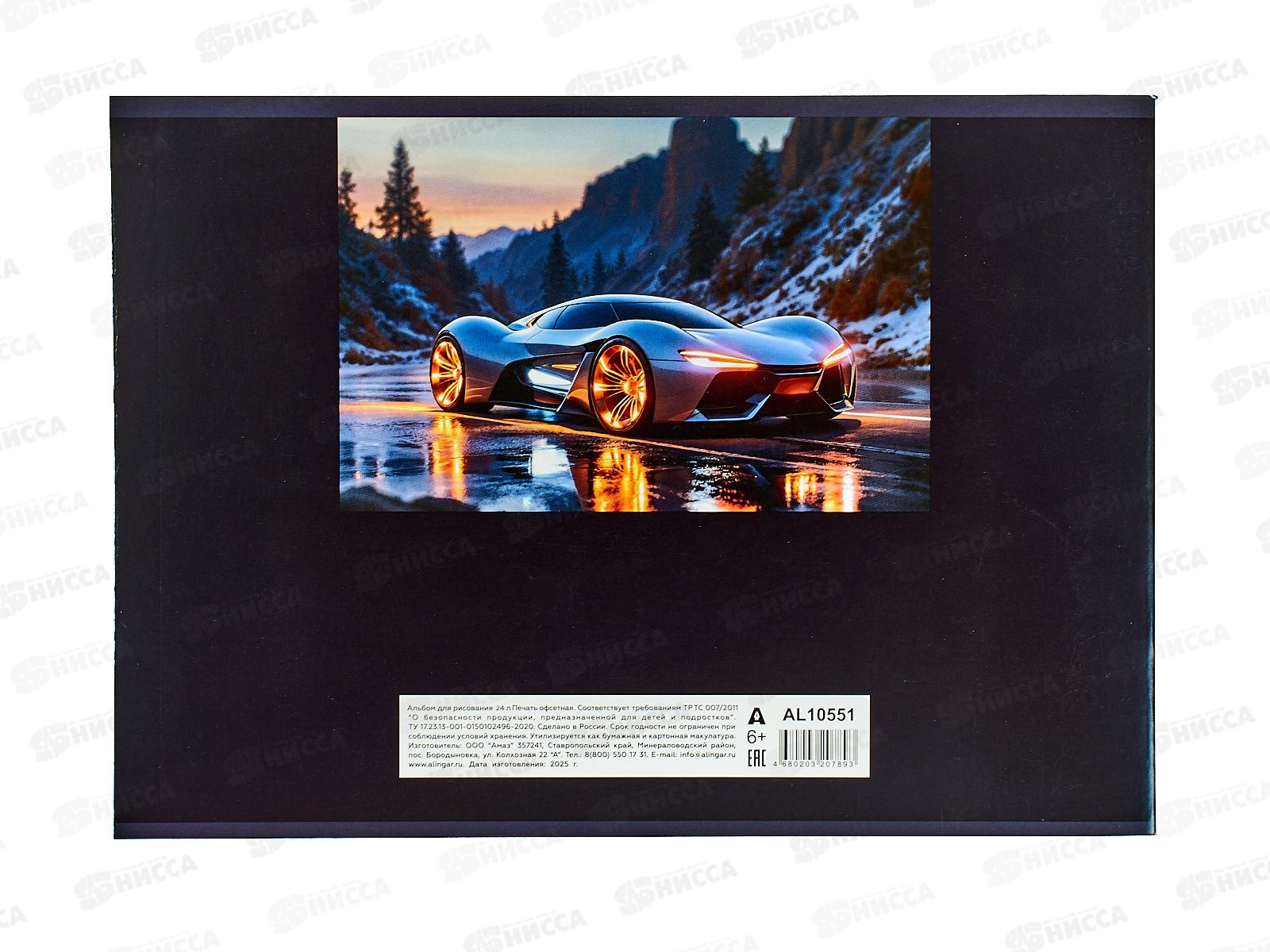Альбом д/рис.24л Alingar "Яркое авто" скрепка мел. карт AL10551 *36